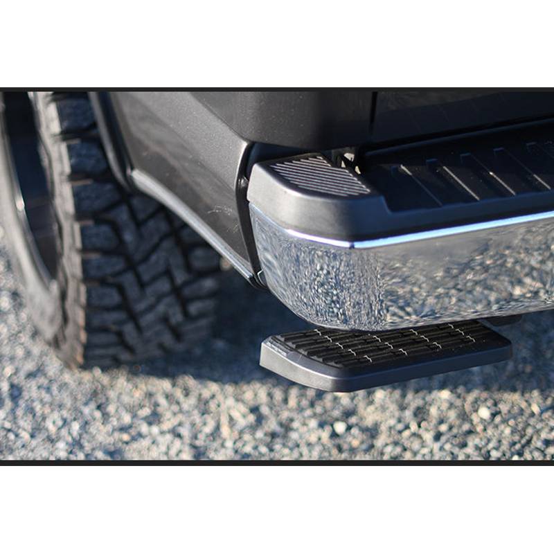 Go ahead and step on it. Bedstep is a real time saver. Not to mention knee and back saver. Strong and rugged, this non-slip, retractable bumper step quickly flips down with the nudge of a foot providing a faster, easier and safer way to load or unload your pickup's cargo. Supports up to 300 lb Frame mounts under the rear bumper so it works even with an open tailgate or when towing.