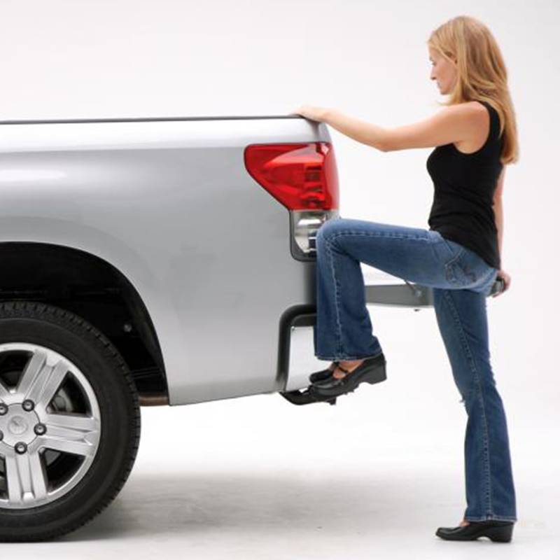 Go ahead and step on it. Bedstep is a real time saver. Not to mention knee and back saver. Strong and rugged, this non-slip, retractable bumper step quickly flips down with the nudge of a foot providing a faster, easier and safer way to load or unload your pickup's cargo. Supports up to 300 lb Frame mounts under the rear bumper so it works even with an open tailgate or when towing.