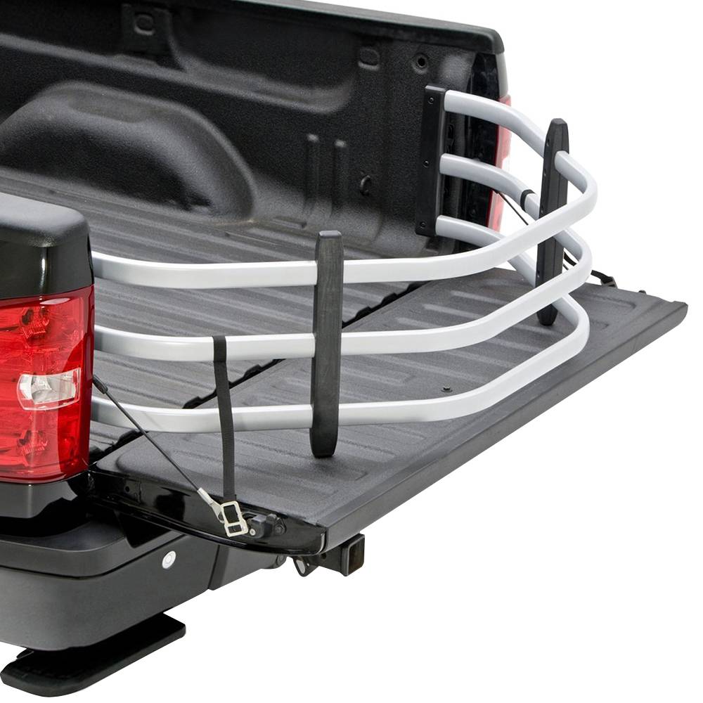 V-shape design is the perfect mix of form and function that keeps your gear secure. Provides the extra clearance needed when used with some tonneau cover rails. Flip it out with the tailgate open to gain up to 2-feet of enclosed cargo area. Flip it inside and close the tailgate to keep tools and smaller cargo contained in the truck bed.