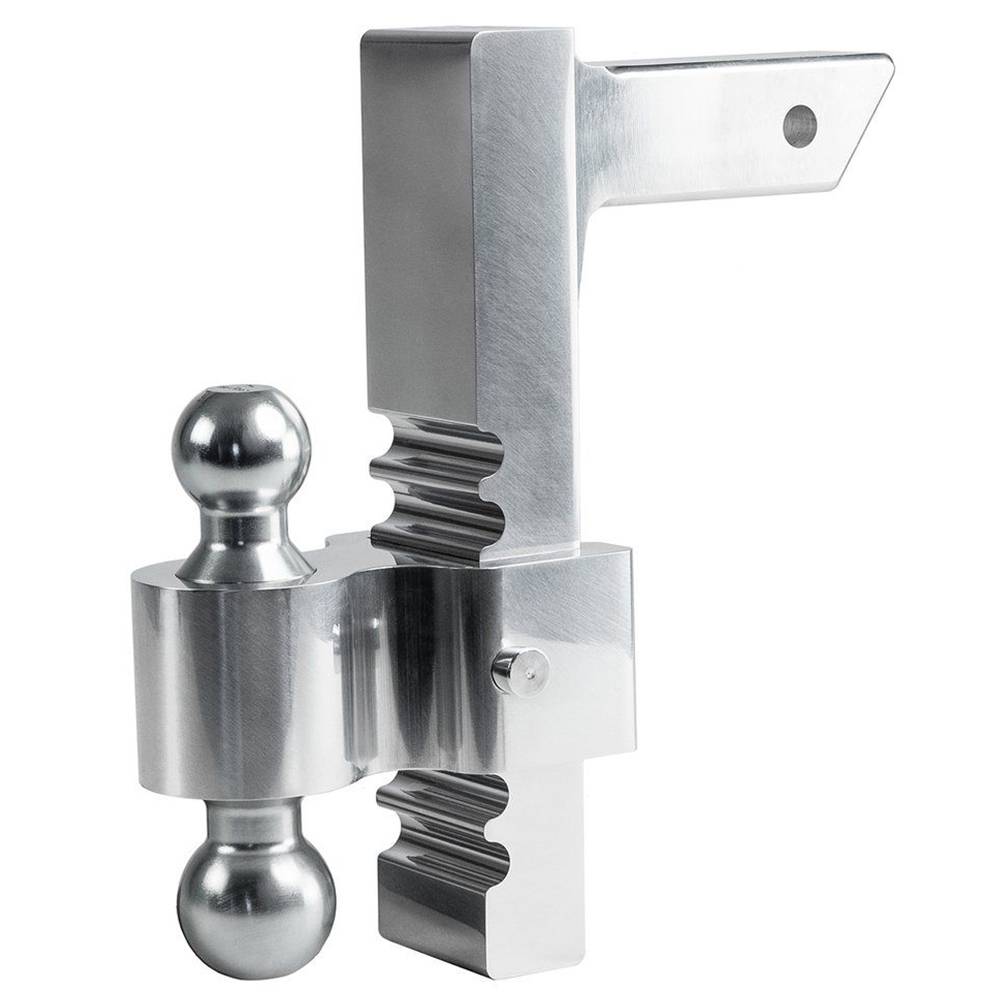 The rapid hitch is made of polished aluminum that will never chip, peel, or rust, so they look as good as they tow. And with a huge selection of rapid hitch ball combinations, you can have one hitch that fits all of your tow vehicles. This 10" drop design is recommended for use on lifted vehicles and has adjustment options that range from approximately 4" of drop to the full 10" drop.