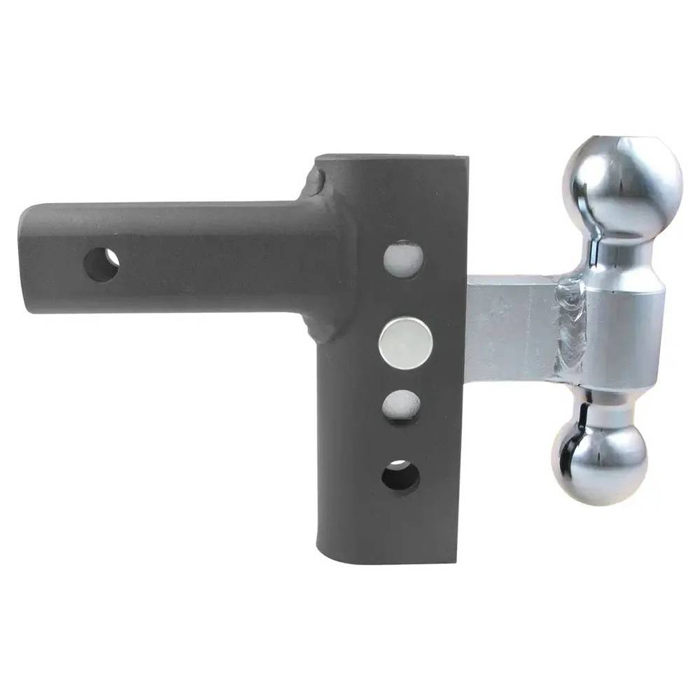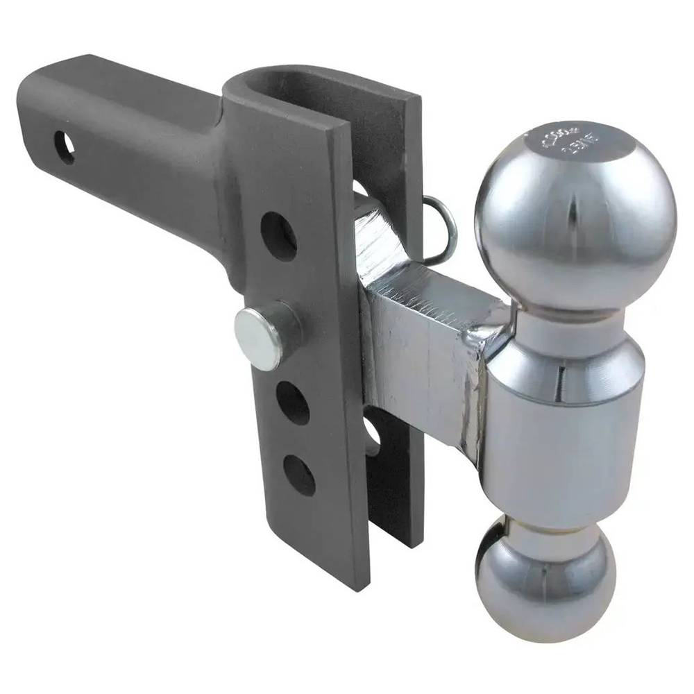All-steel, adjustable ball mount lets you tow up to 10,000 lbs with the convenience of a 4" drop or 4" rise. Includes 2" and 2-5/16" steel hitch balls, and fits 2" trailer hitches.