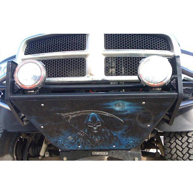 - Lower brushed aluminum skid plate is included