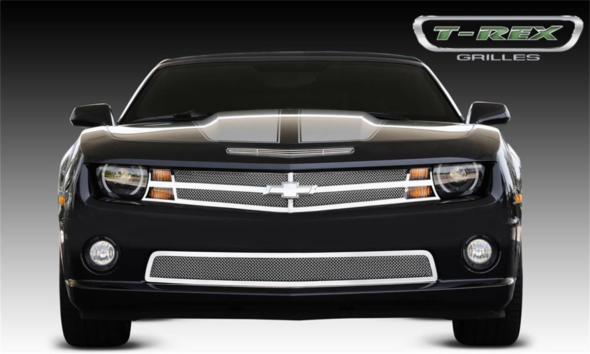 T-Rex Grilles 54028 Upper Class Series Mesh Grille Small Mesh - Stainless Steel - Polished - 2 Pc - Overlay - w/Center Bar And Formed Mesh