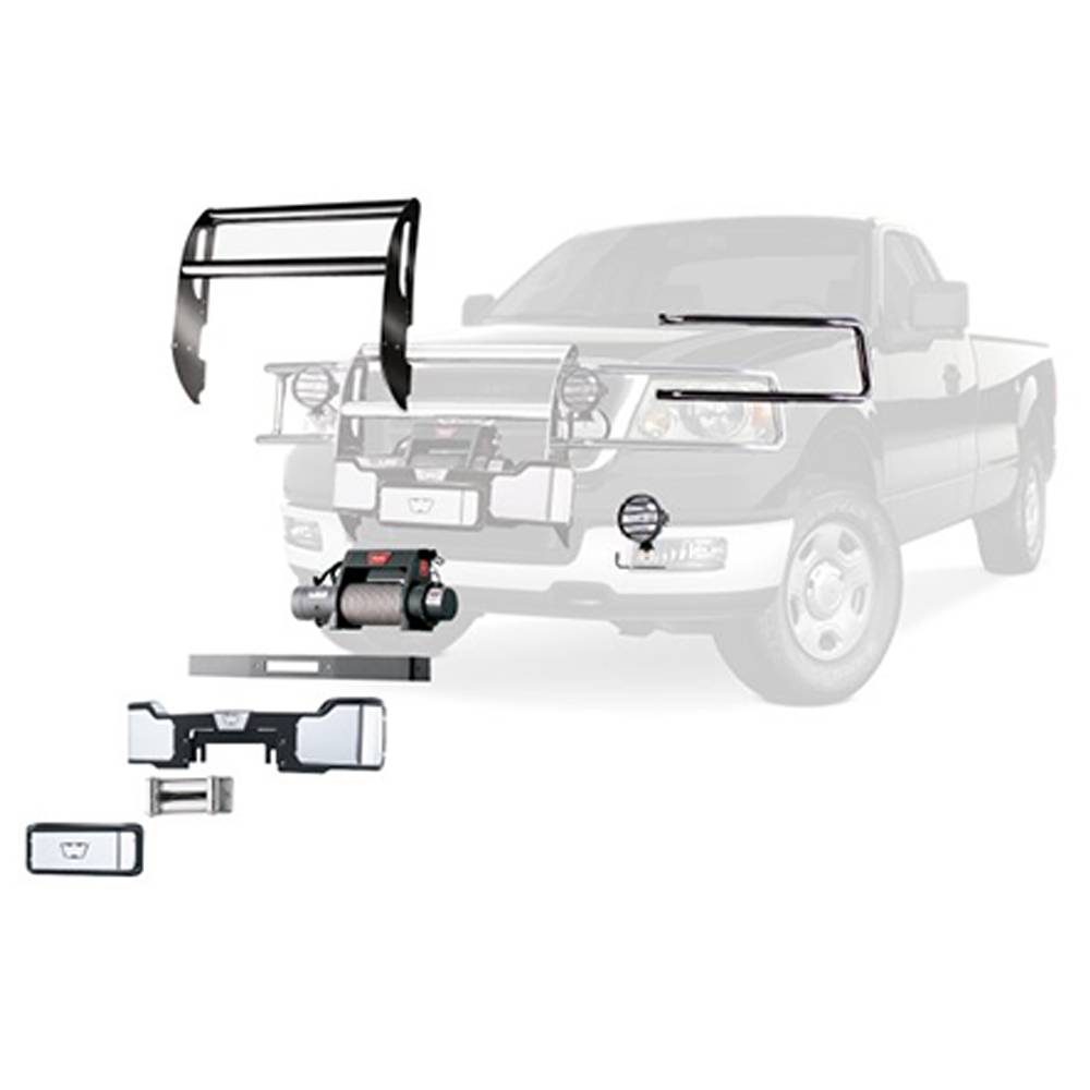 The foundation of the trans4mer system. The grille guard comes with two uprights and two crossbars, and bolts directly to the vehicles frame. It is a required component because it provides the base for all other options. This Warn industries trans4mer grille guard does include insert bars and comes in powder coated black. The first generation Trans4mer can be configured in several ways to match your needs. This system is engineered so the grille guard uprights bolt directly to the vehicles frame, and the winch carrier then bolts to the grille guard uprights. All components are sold separately, so you can configure the system to meet your needs. Available for earlier-model full-size trucks and SUVs.