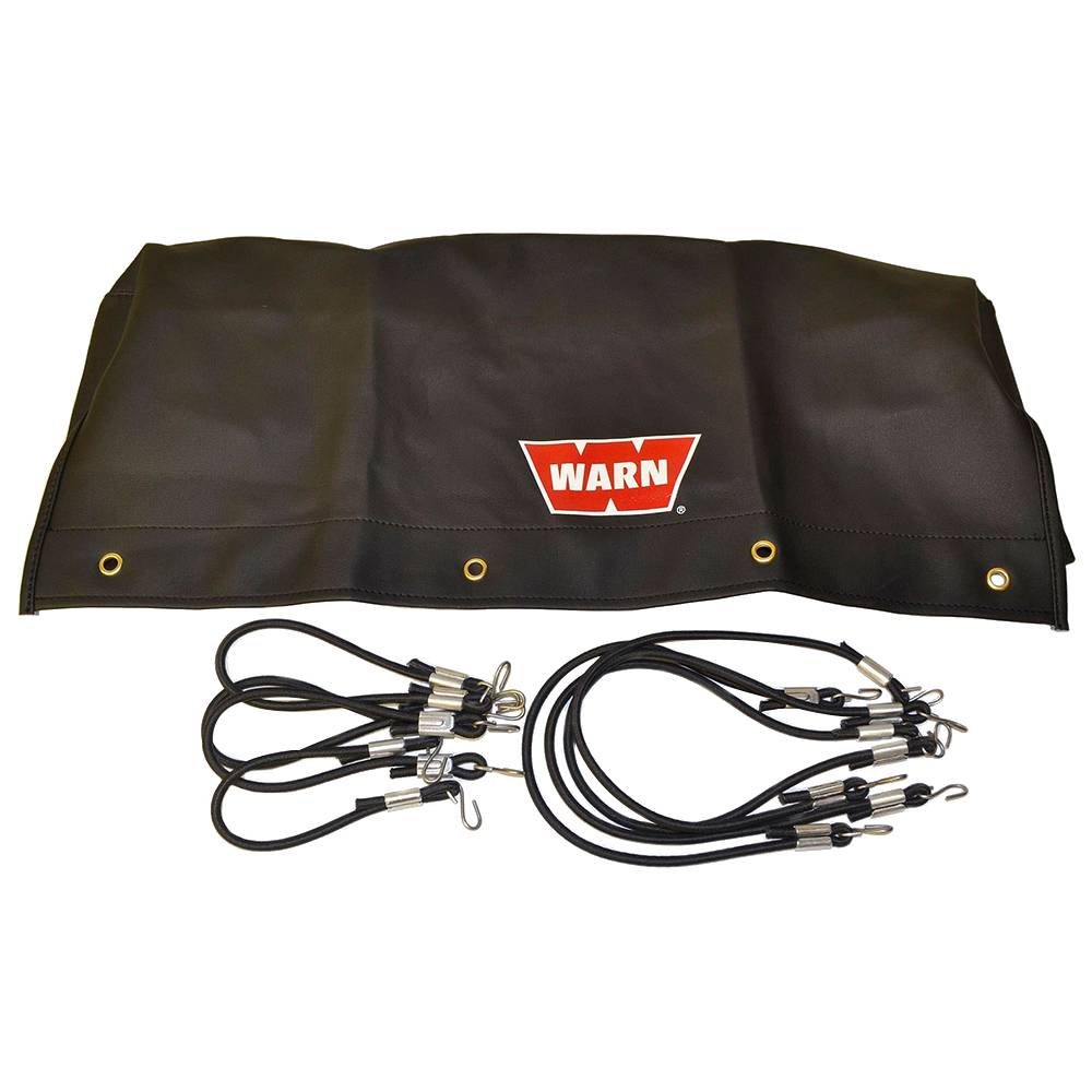 Warn soft winch covers are made of durable nylon backed vinyl, and hold securely in place with elastic bungee cord fasteners.