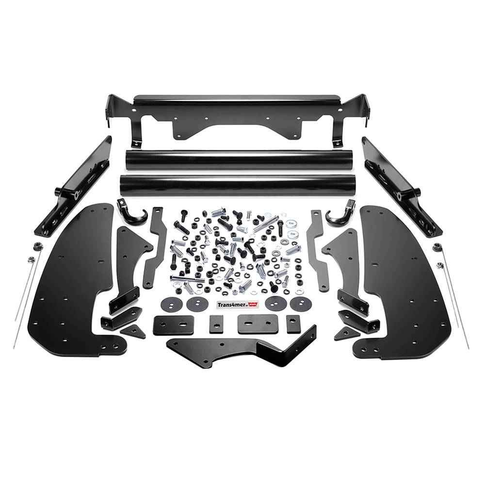 The foundation of the trans4mer system. The Grille Guard comes with two uprights and two crossbars, and bolts directly to the vehicles frame. It is a required component because it provides the base for all other options. This Warn industries trans4mer grille guard does not have a brush guard and step plate and comes in powder coated black. The first generation trans4mer can be configured in several ways to match your needs. This system is engineered so the grille guard uprights bolt directly to the vehicles frame, and the winch carrier then bolts to the grille guard uprights. All components are sold separately, so you can configure the system to meet your needs. Available for earlier-model full-size trucks and SUVs.