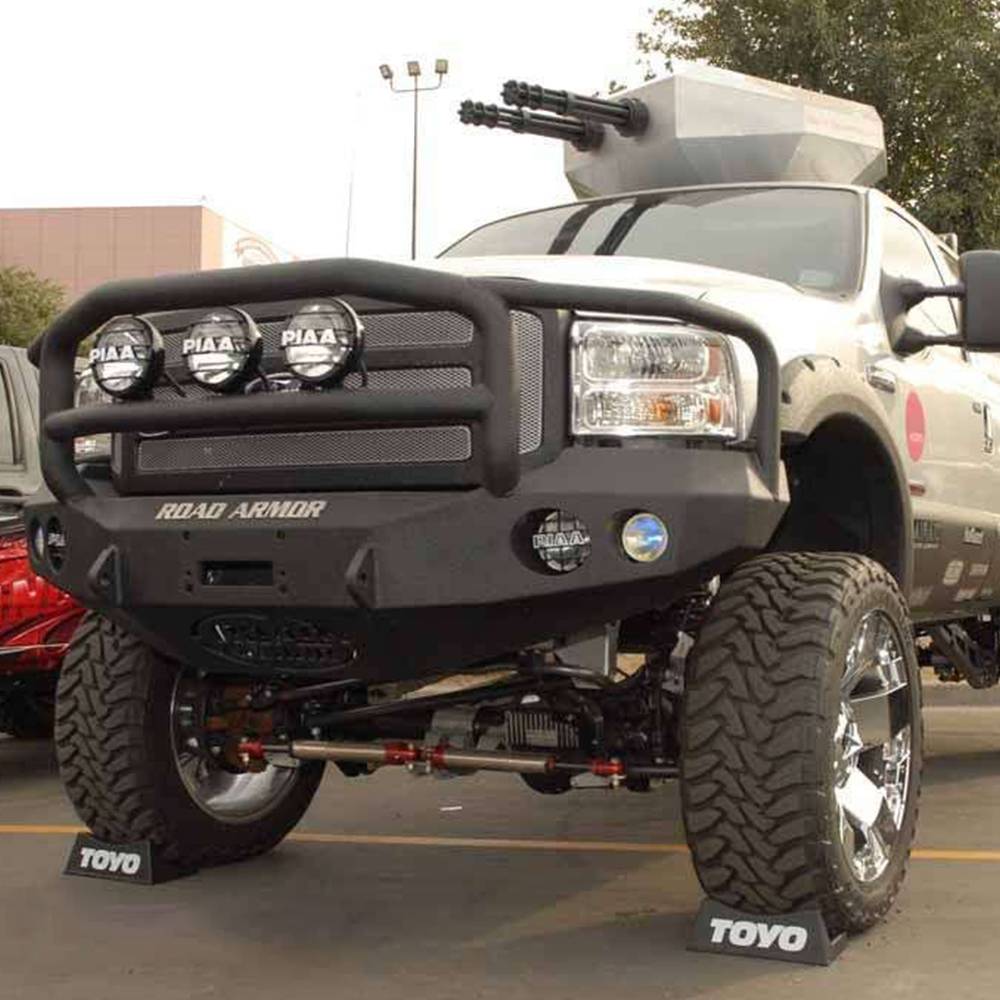 Road Armor 66005B Stealth Winch Front Bumper with Lonestar Guard and Round Light Holes for Ford F250/F350/F450/Excursion 1999-2004