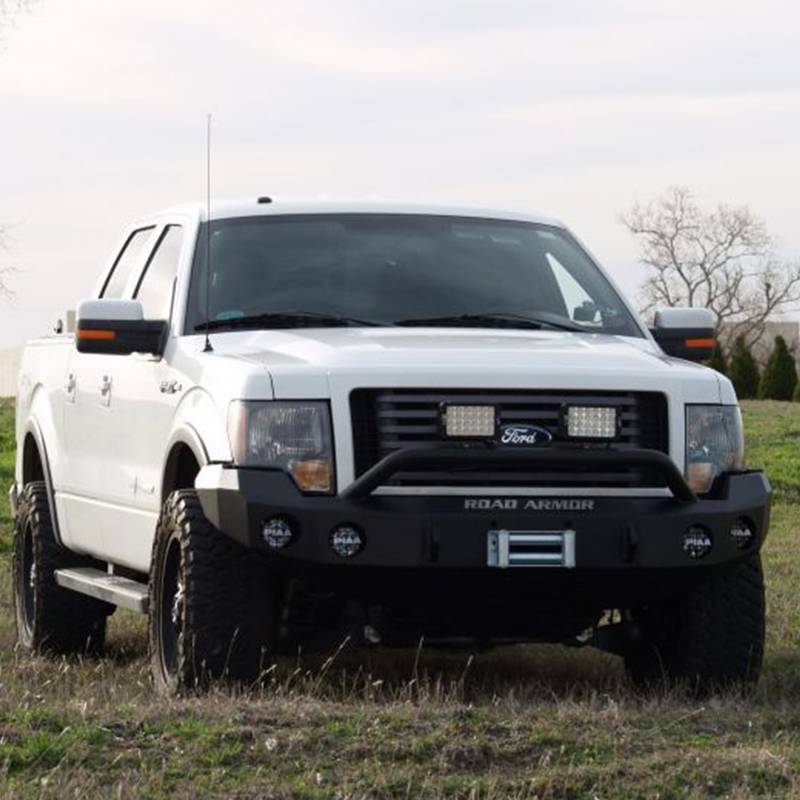 Road Armor 66134B Stealth Winch Front Bumper with Pre-Runner Guard and Round Light Holes for Ford F150 2009-2014