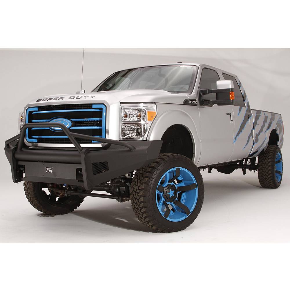 Fab Fours FS11-Q2562-1 Black Steel Elite Smooth Front Bumper with Pre-Runner Guard for Ford F250/F350/F450/F550 2011-2016