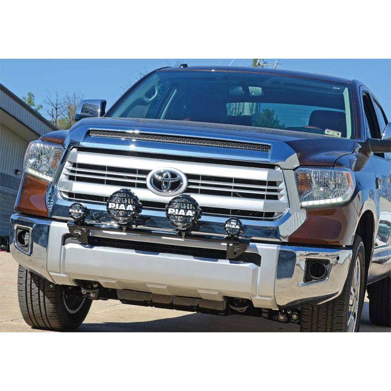 The front mount light bar is made from .095 wall tubing in a one-piece design for ultimate strength. The front mount light bar has superior corrosion resistance. The front mount light bar allows for mounting of up to four 9" lights. The front mount light bar bolts onto your factory bumper making for a quick and easy install.
