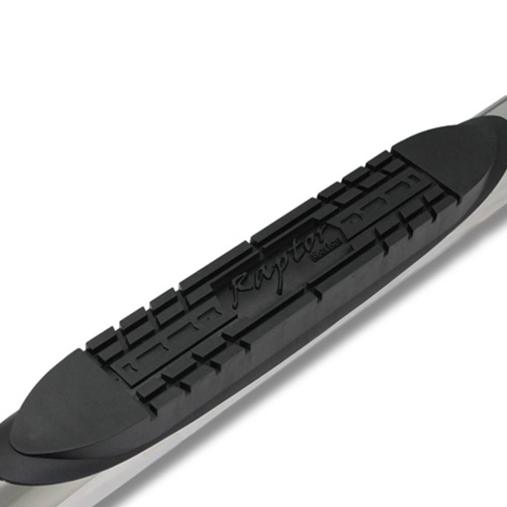 The 3" nerf bars make getting in and out of your cab a safer experience for you and your passengers. The raised saddle style step pad sports the raptor series logo in the middle and gives your ride that finished look you want. Limited lifetime warranty means you can trust your new raptor series nerf bars to stand up to the test of time. The 3" step pad is raised with traction pads that get you safely into your cab no matter how much mud you carried with you.