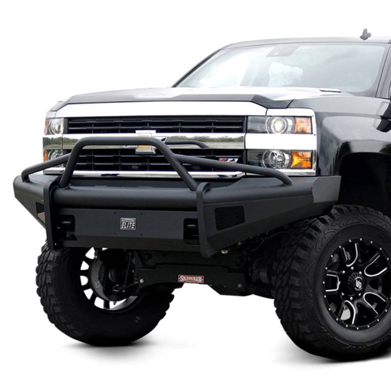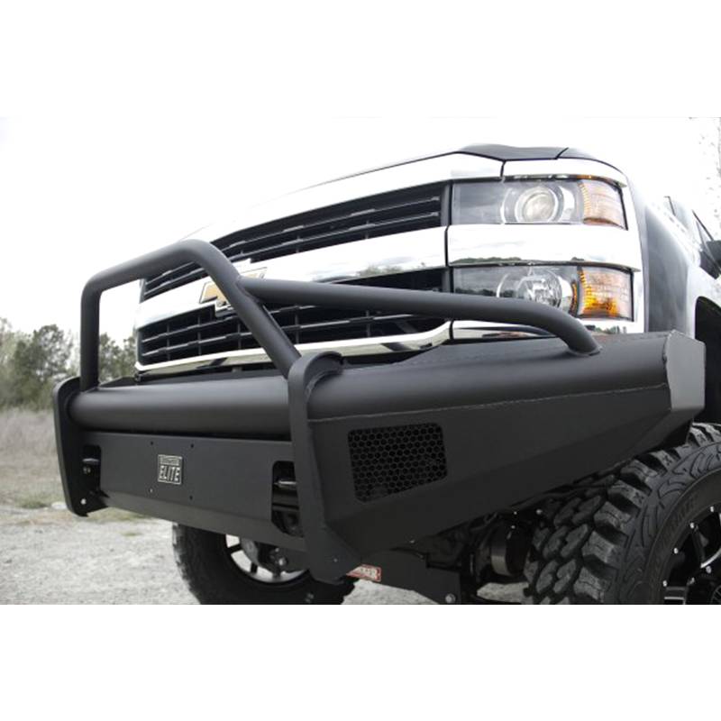 Chevy HD we took the ranch bumper design and combined it with the smooth plate look from our premium line to create BLACK STEEL ELITE. No grill mesh and premium powder coat give the ELITE bumpers a unique look. Like all Fab Fours products we matched every bumper to the body lines of each model truck. The ELITE series is a whole new look with the same Fab Fours quality.