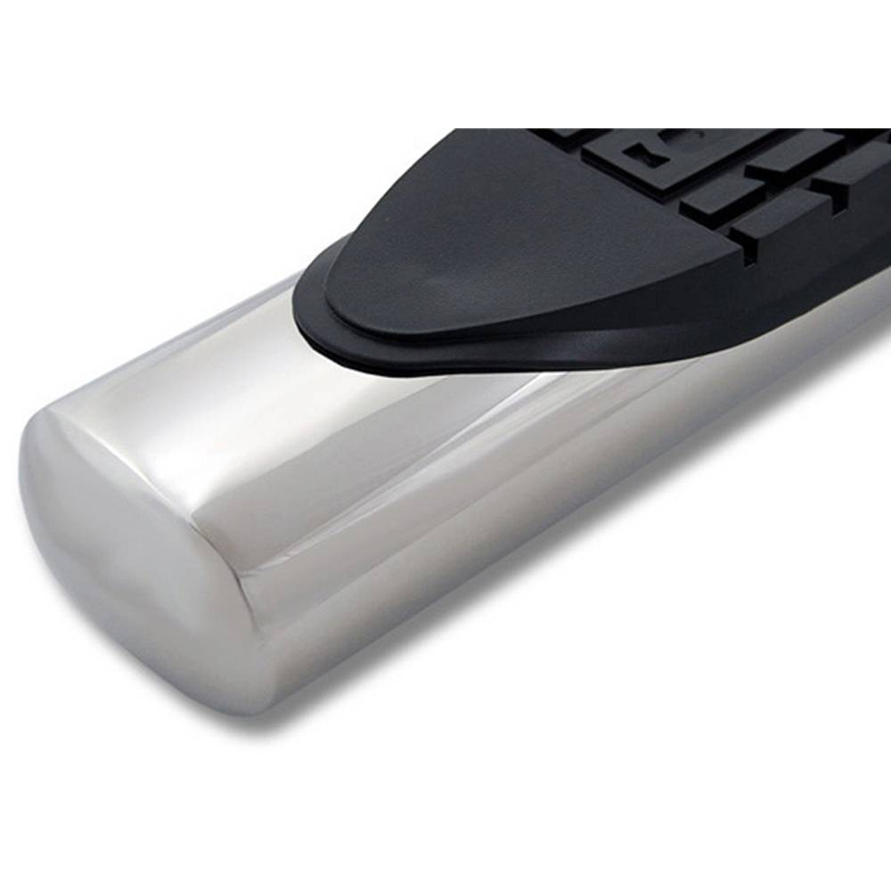 These 4" straight oval tubes have grown in popularity. These step bars feature a full 4" raised saddle style step pad with the Raptor Series logo in the middle. These stainless steel step tubes come with seamless welded end caps.