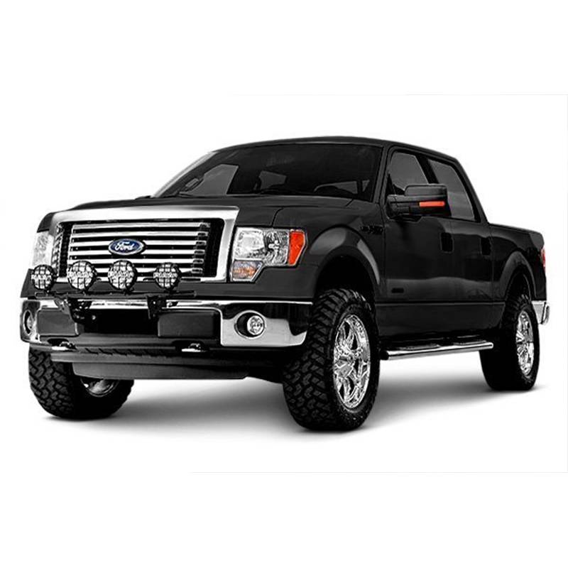 The front mount light bar is made from .095 wall tubing in a one-piece design for ultimate strength. The Front Mount Light Bar allows for mounting of up to four 9" lights. The Front Mount Light Bar bolts onto your factory bumper making for a quick and easy install.