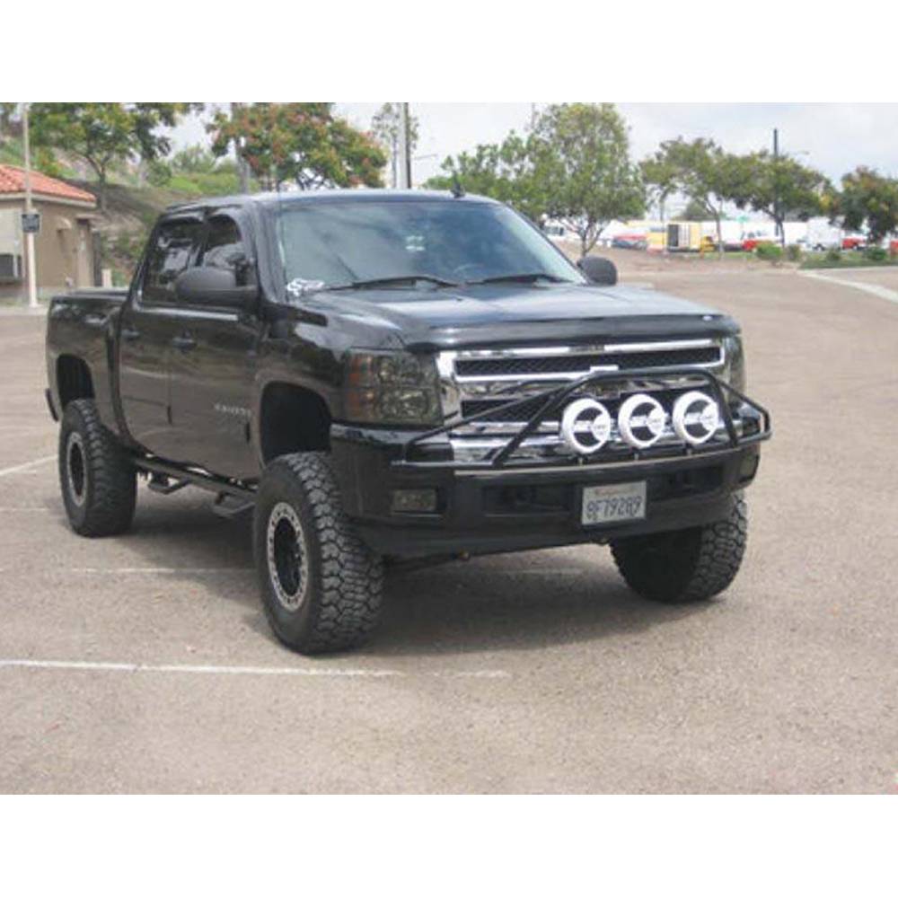 The pre-runner light bar is designed to give you mounting options for additional off-road lighting and grille protection. The N-Fab pre-runner light bar is constructed from .095 wall race car tubing. This rugged light mounting solution offers space to mount up to three 9" lights. For an easy install the N-Fab pre-runner light bar has been designed to mount directly to your factory bumper.