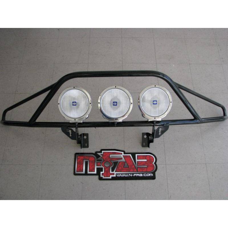 The pre-runner light bar is designed to give you mounting options for additional off-road lighting and grille protection. The N-Fab pre-runner light bar is constructed from .095 wall race car tubing. This rugged light mounting solution offers space to mount up to three 9" lights. For an easy install the N-Fab pre-runner light bar has been designed to mount directly to your factory bumper.