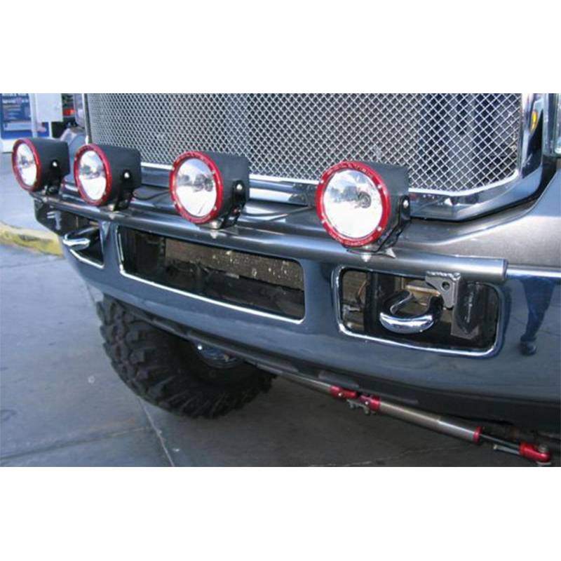 The front mount light bar is made from .095 wall tubing in a one-piece design for ultimate strength. The front mount light bar allows for mounting of up to four 9" lights. The front mount light bar bolts onto your factory bumper making for a quick and easy install.