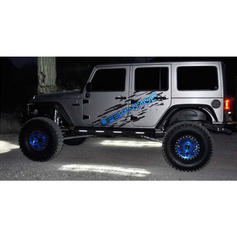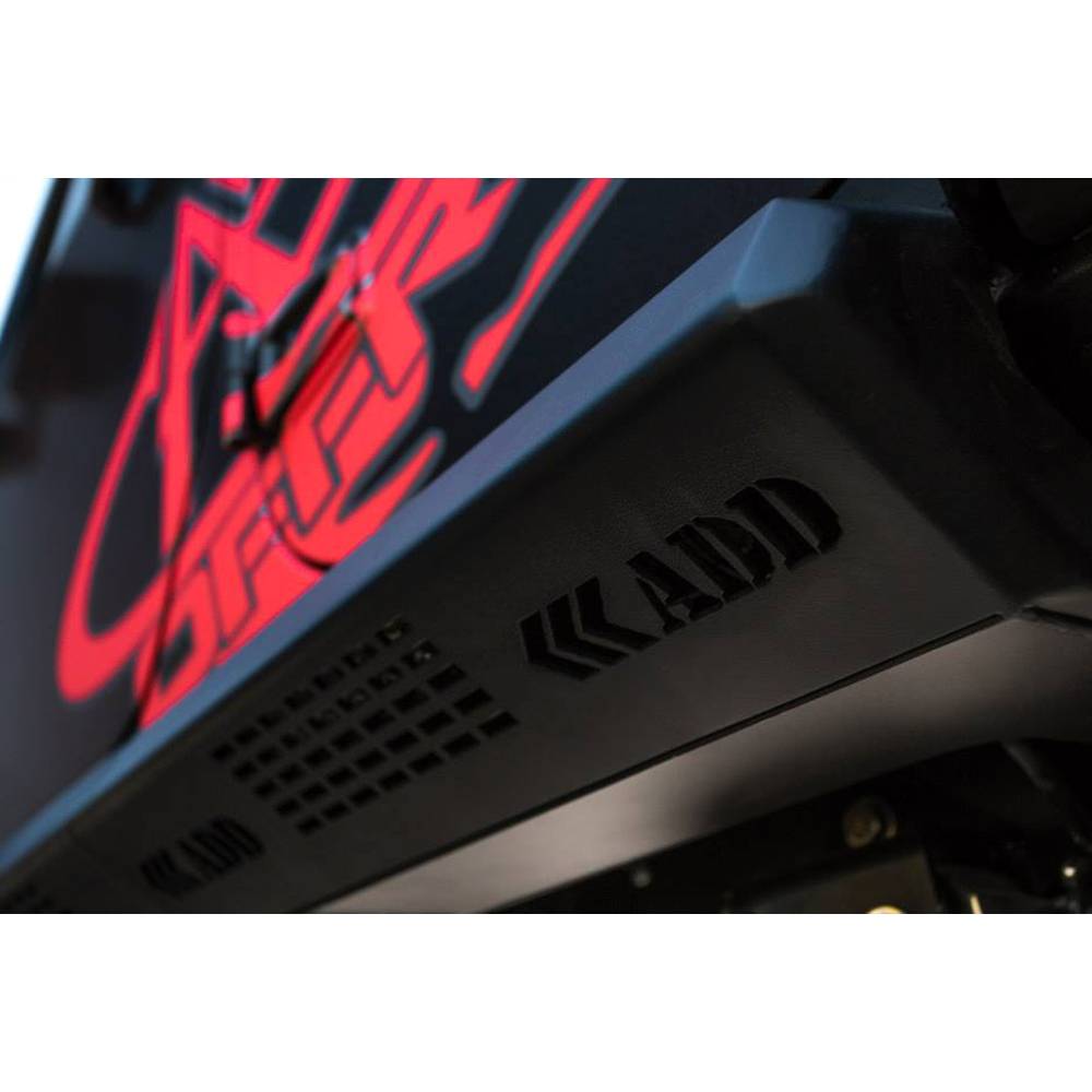The new ADD offroad stealth fighter side steps are designed with function in mind. Beefy enough to provide protection in the most extreme conditions, yet many flexible lighting options to fit all of your rock lights. Manufactured from 3/16" plate and gusseted slong the entire body, these are the toughest sliders on the market.