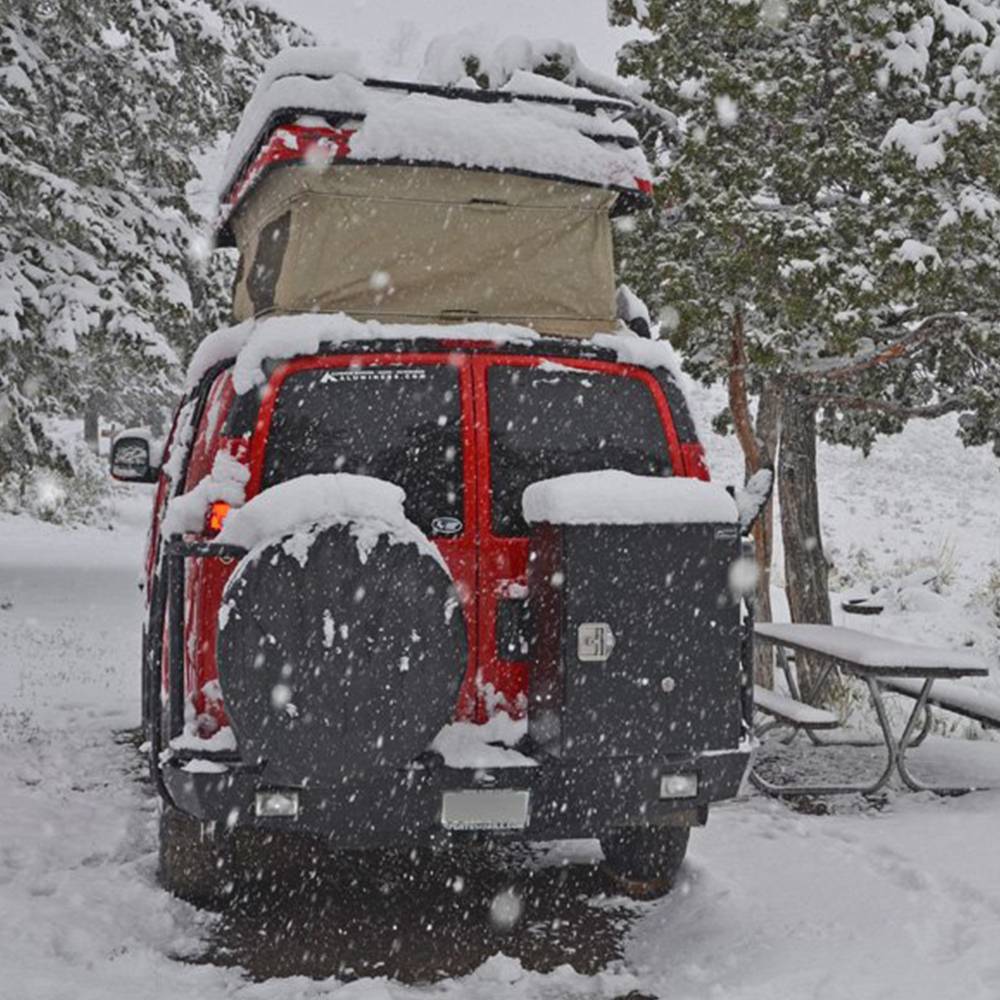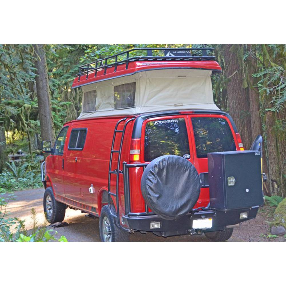 Storage is a premium when converting a van into your home away from home. If your van is a 44, then you also have to compete with a tire that no longer fits underneath your van. We kept this in mind when designing the rear bumper and the accessories that compliment it. With 2 swing Arm to hold your spare tire and a storage box, you will now have more room for the essentials to put inside your van. In most cases, any of the Aluminess boxes will work on the swing arm! Whether its extra fuel, a generator, or recovery gear that you need, your Aluminess rear bumper is there to help out.