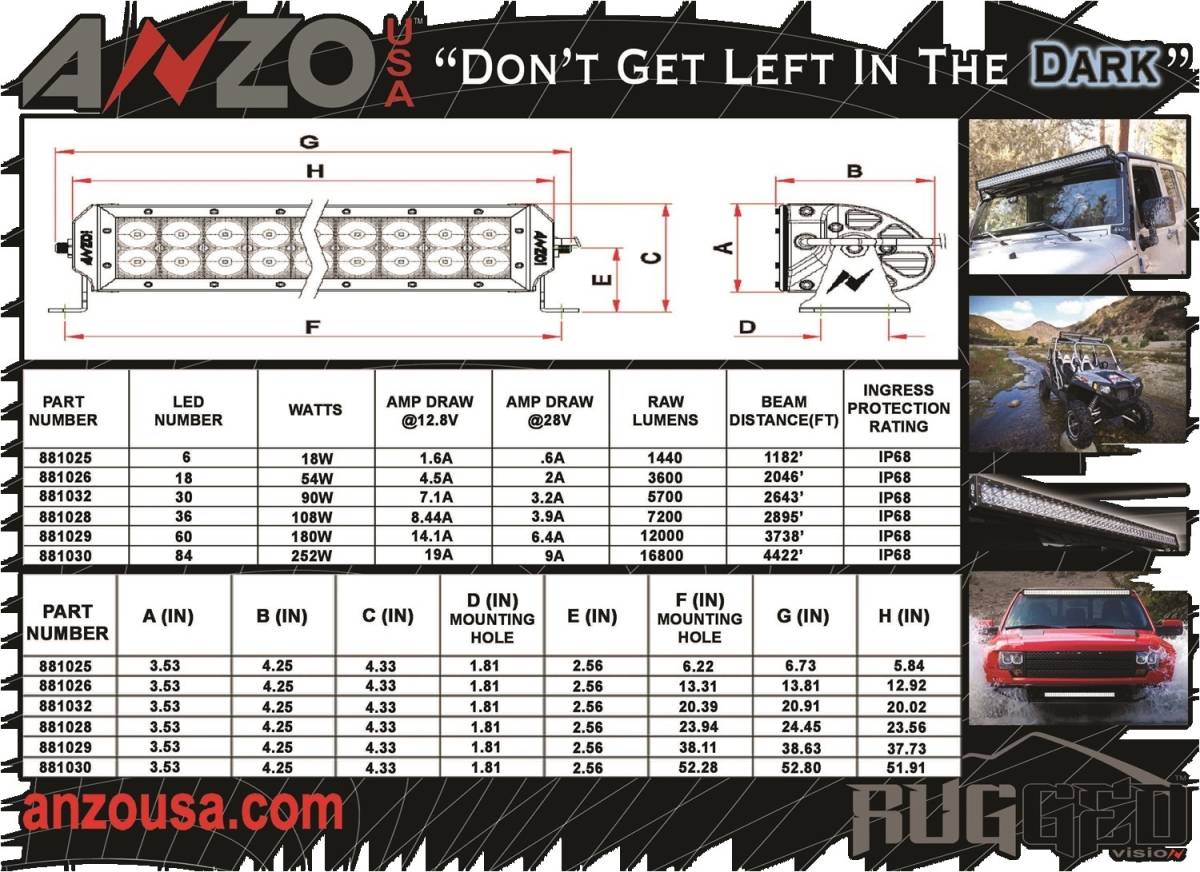 Anzo USA - Rugged Vision Off Road LED Light Bar P/N 881042 Features:
