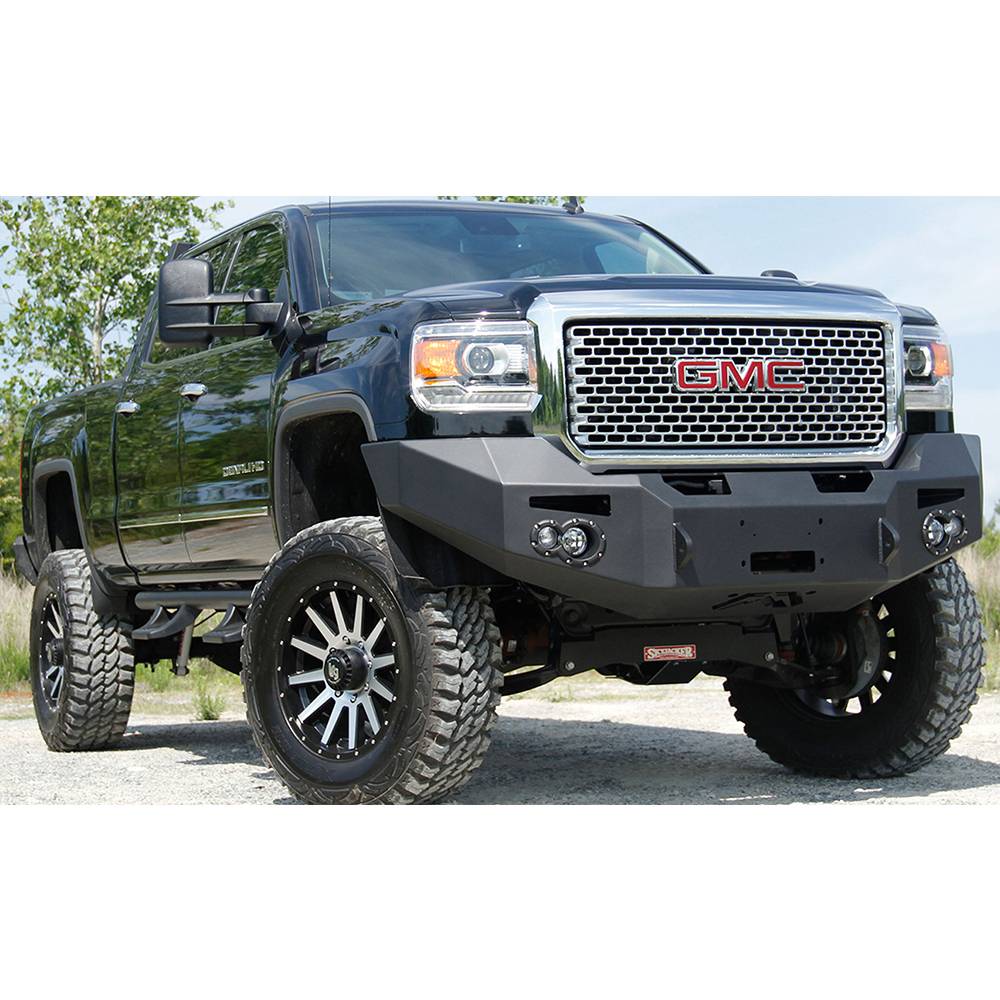 The Fab Fours GMC HD premium winch bumper focuses on strength and durability. This bumper is designed to be the ultimate in functionally-stylish front end protection while also providing more tire clearance to eliminate rubbing.