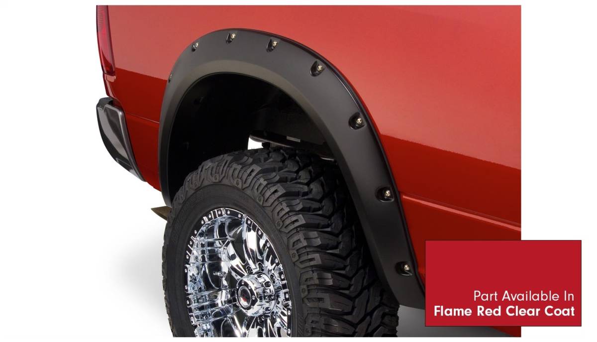 Bushwacker 50919-75 Pocket Style Painted Fender Flares 4 pc. - Front Coverage 2.6 in. - Front Height 4.75 in. - Rear Coverage 2 in - Rear Height 4.75 in. - Flame Red Clear Coat