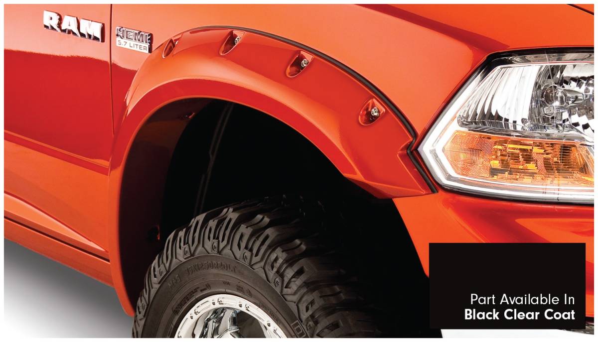 Bushwacker 50915-35 Pocket Style Painted Fender Flares 4 pc. - Front Coverage 2.6 in. - Front Height 4.75 in. - Rear Tire Coverage 2 in - Rear Height 4.75 in. - Black Clear Coat