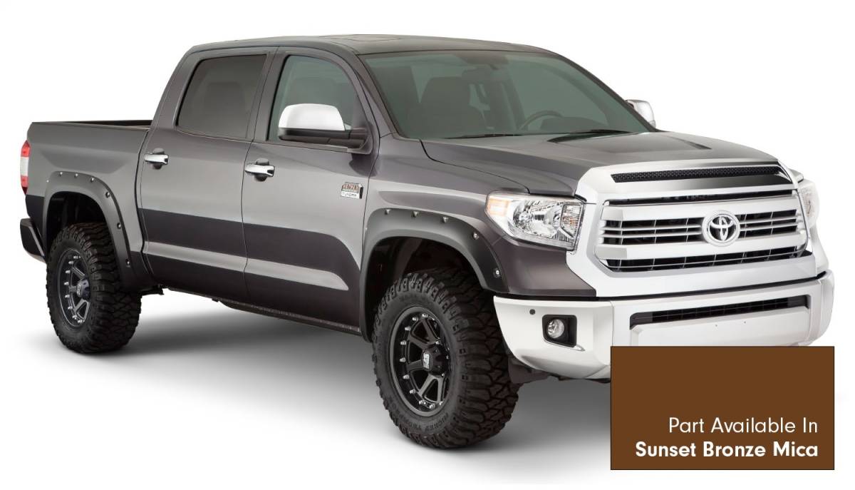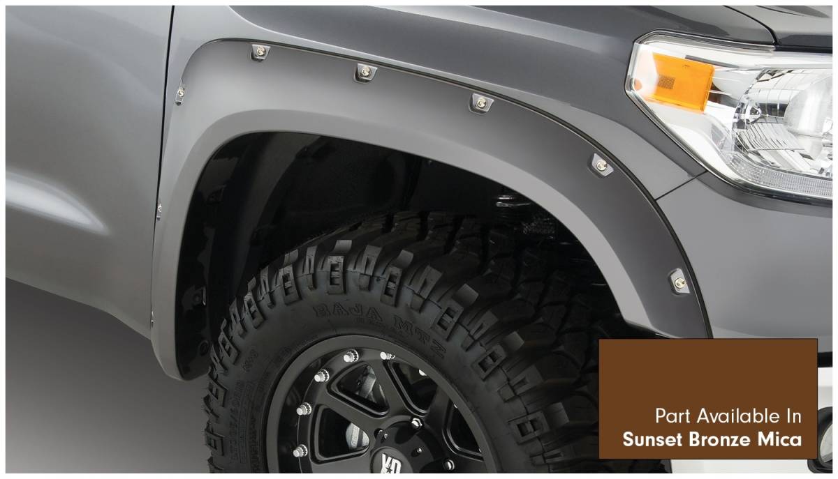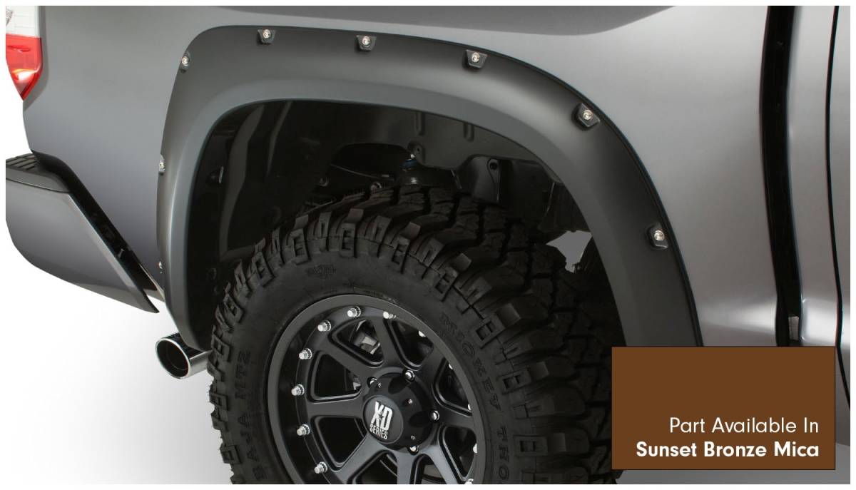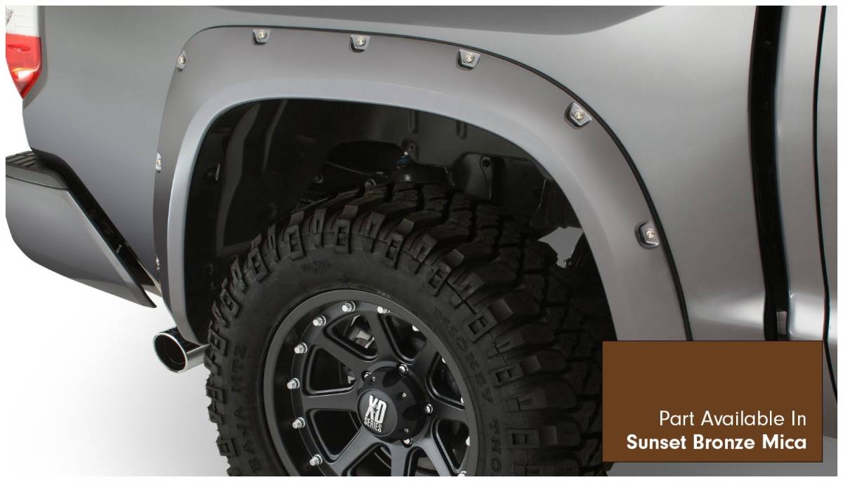 Bushwacker 30918-83 Pocket Style Painted Fender Flares 4 pc. - Front Tire Coverage 1.75 in. - Front Height 4.5 in. - Rear Tire Coverage 1.75 in - Rear Height 4.5 in. - Sunset Bronze Mica