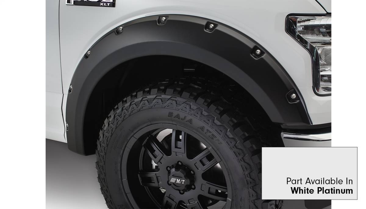 Bushwacker 20935-22 Pocket Style Painted Fender Flares 4 pc. - Front Tire Coverage 1.5 in. - Front Height 6.13 in. - Rear Tire Coverage 1.5 in - Rear Height 7 in. - White Platinum