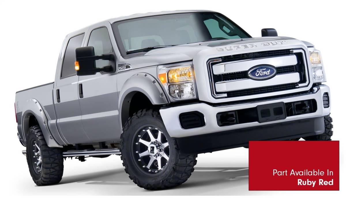 Bushwacker 20931-72 Pocket Style Painted Fender Flares 4 pc. - Front Tire Coverage 2 in. - Front Height 7.25 in. - Rear Tire Coverage 2 in - Rear Height 7.25 in. - Smooth Finish - Ruby Red