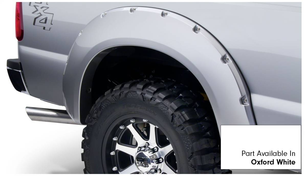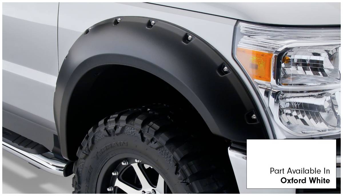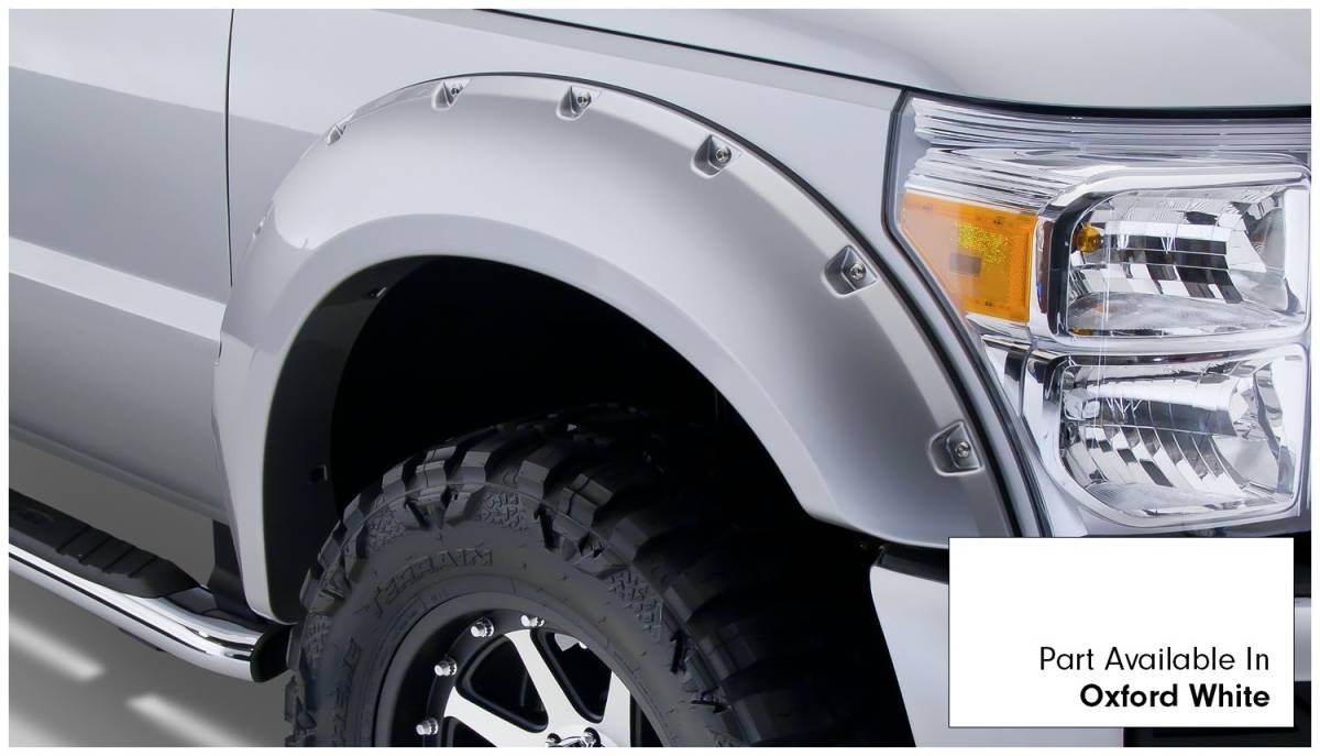Bushwacker 20931-12 Pocket Style Painted Fender Flares 4 pc. - Front Tire Coverage 2 in. - Front Height 7.25 in. - Rear Tire Coverage 2 in - Rear Height 7.25 in. - Oxford White