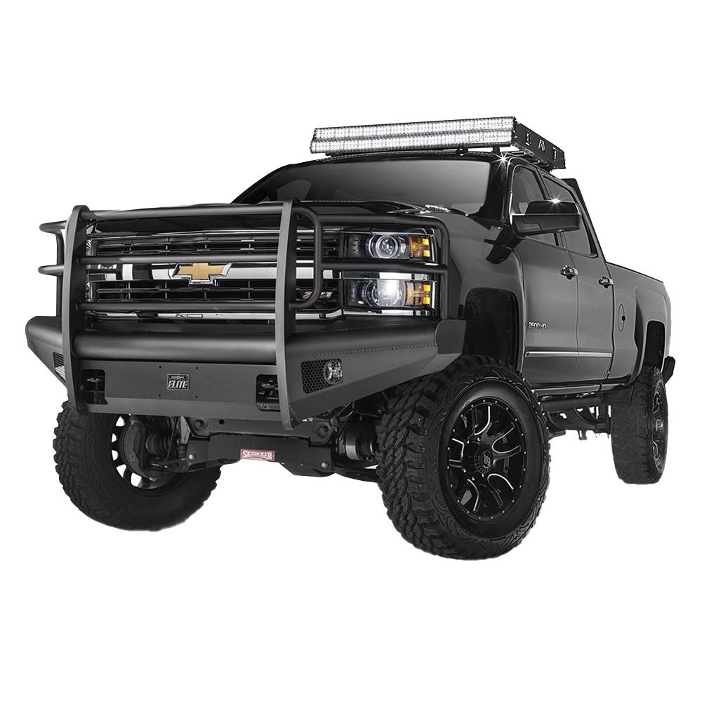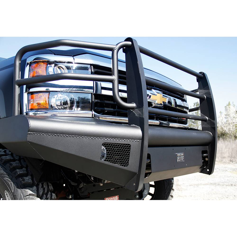 Chevy HD we took the ranch bumper design and combined it with the smooth plate look from our premium line to create BLACK STEEL ELITE. No grill mesh and premium powder coat give the ELITE bumpers a unique look. Like all products we matched every bumper to the body lines of each model truck. The ELITE series is a whole new look with the same quality.