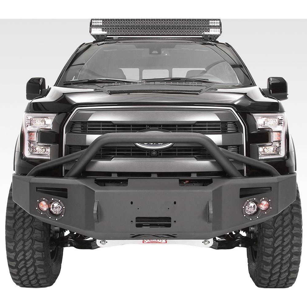 The Fab Fours Ford F150 premium winch bumper focuses on strength and durability. This bumper is designed to be the ultimate in functionally-stylish front end protection while also providing more tire clearance to eliminate rubbing.