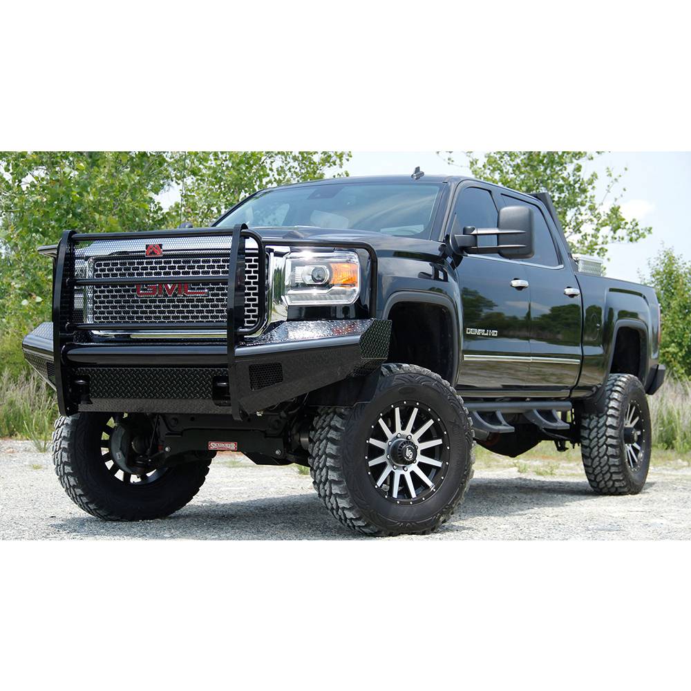 Fab Fours GM14-S3160-1 Black Steel Front Bumper with Full Grille Guard for GMC Sierra 2500/3500 2015-2019