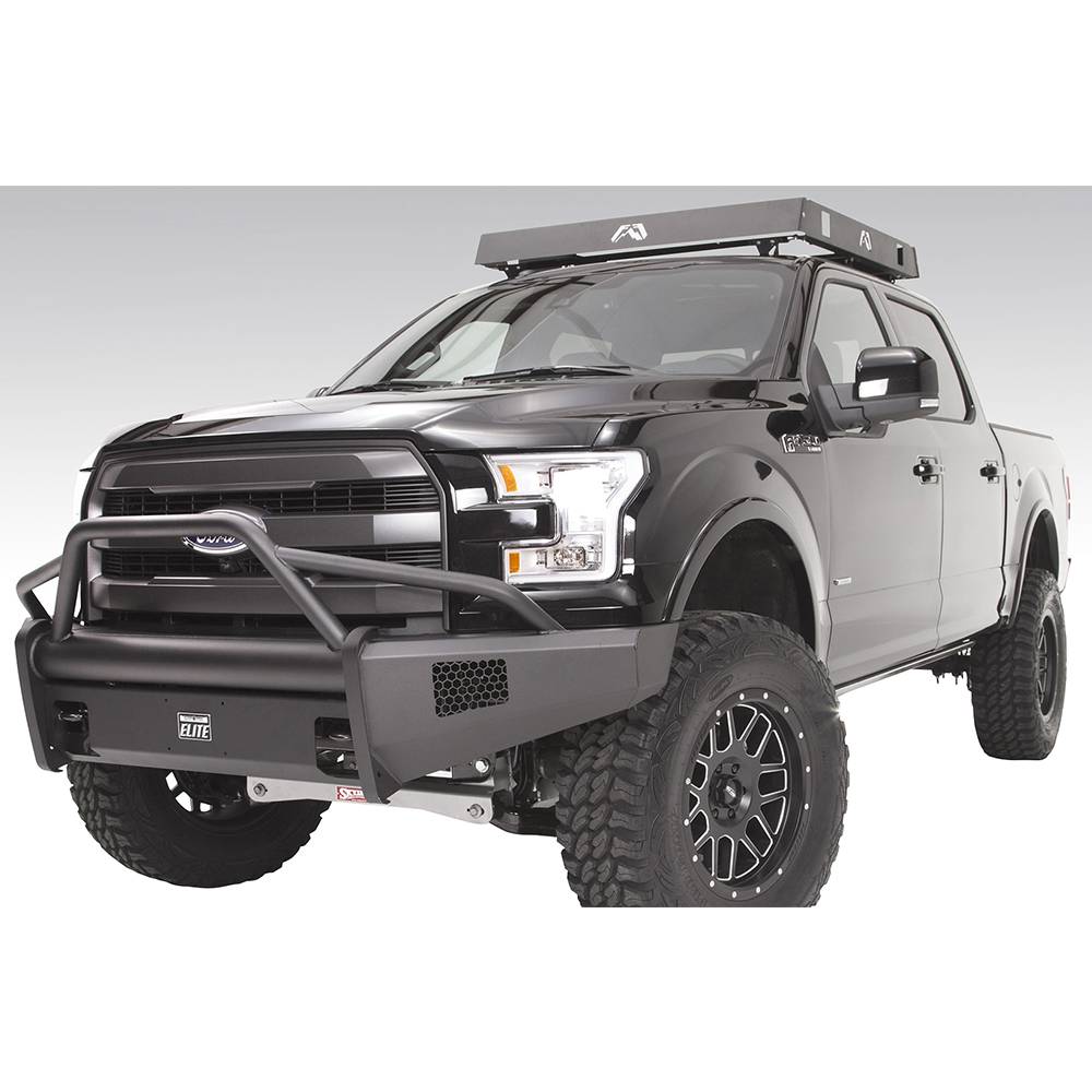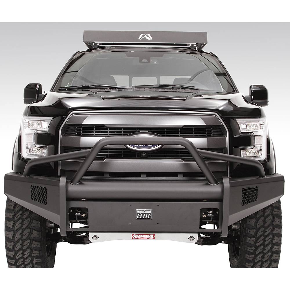 Fab Fours FF15-R3252-1 Black Steel Elite Smooth Front Bumper with Pre-Runner Guard for Ford F150 2015-2017