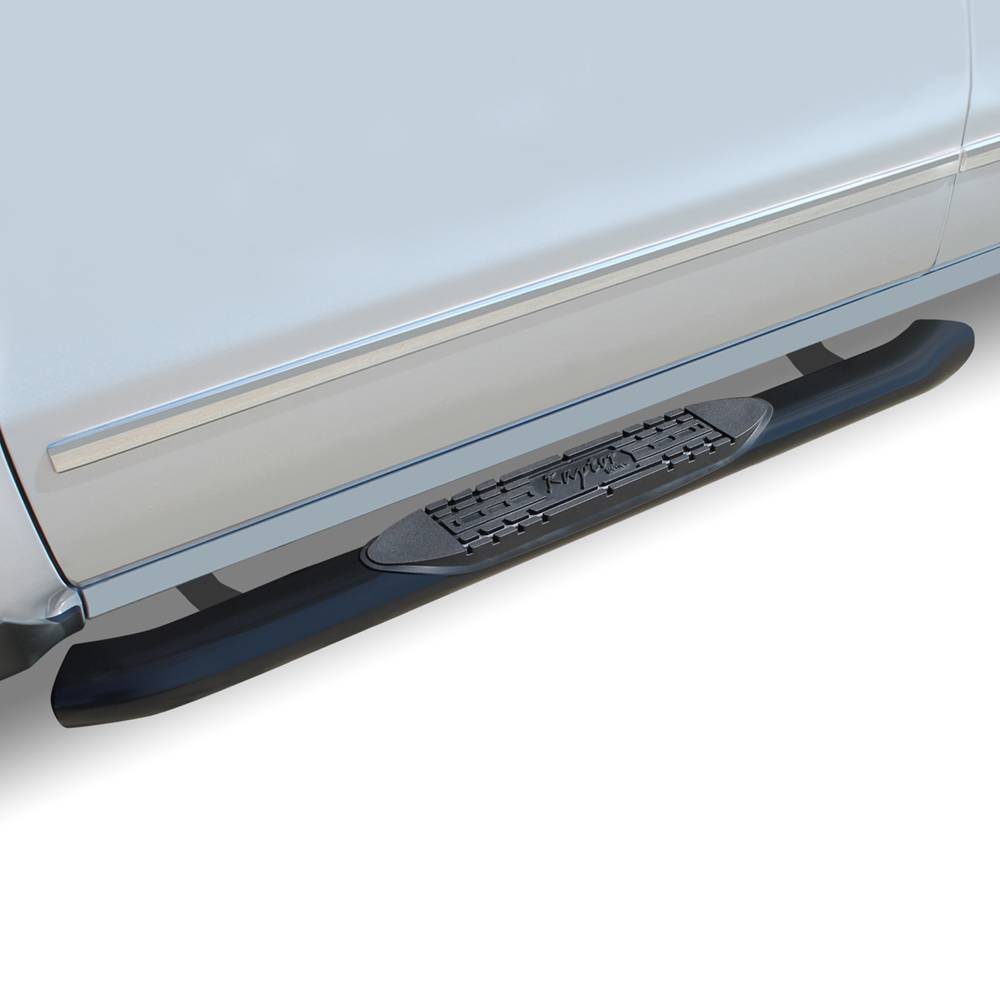 Raptor series now offers its new curved 4" OE style black E-coated oval step bars. This new step features seamless welded end caps and 30 degree OE styled bends on each end.