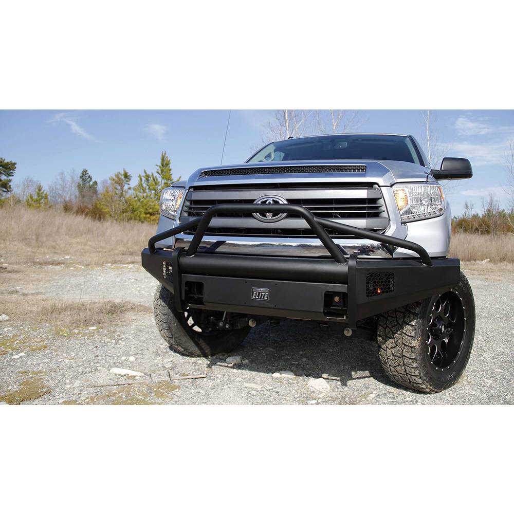 Fab Fours TT14-R2862-1 Black Steel Elite Smooth Front Bumper with Pre-Runner Guard for Toyota Tundra 2014-2019