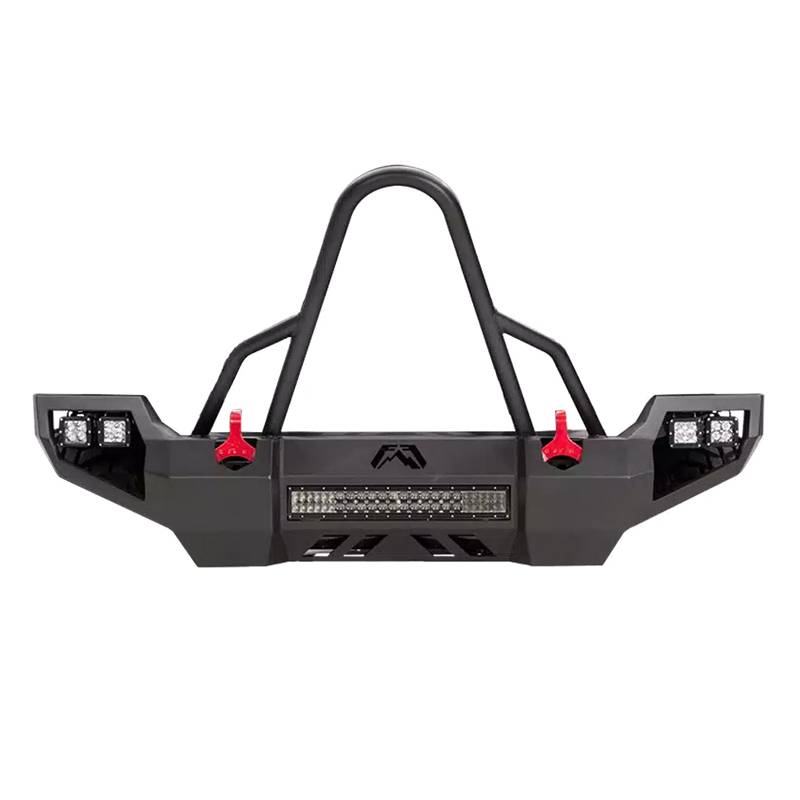 The Fab Fours Vengeance Series Bumper is a non-winch bumper that is engineered to be light weight and offer a sleek and stylish finish for the front of your jeep. Mounting for an Integrated 20 inch LED light bar in the center and mounting options on each side for (2) 2-inchs LEDs to give you maximum LED light coverage. All lights are sold separately. The fit of this bumper is high and tight to give you that aggressive look both on and off the road. Made in the USA from US steel.