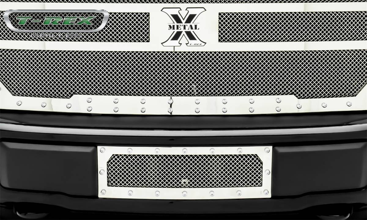 T-Rex Grilles 6725740 X-Metal Series Mesh Bumper Grille Assembly Small Mesh - Stainless Steel - Polished - Chrome Studs - 1 Pc - Insert