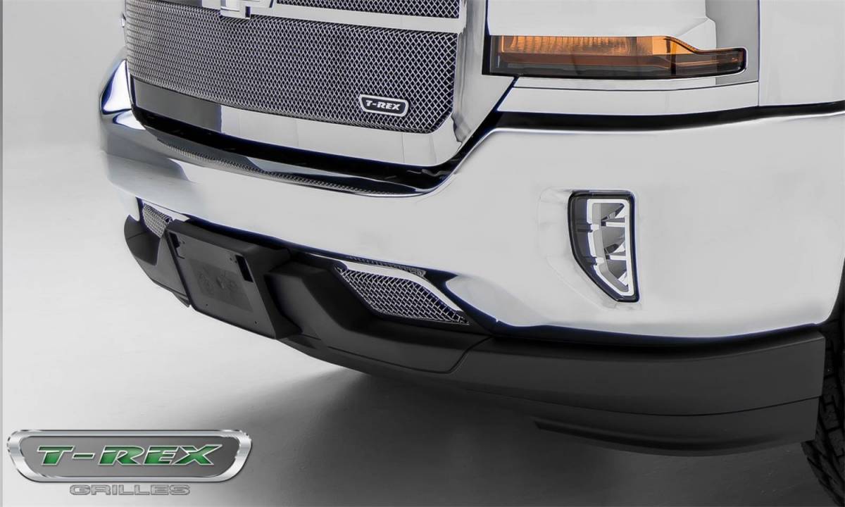 T-Rex Grilles 55127 Upper Class Series Mesh Bumper Grille Overlay Small Mesh - Stainless Steel - Polished - 2 Pc - Overlay