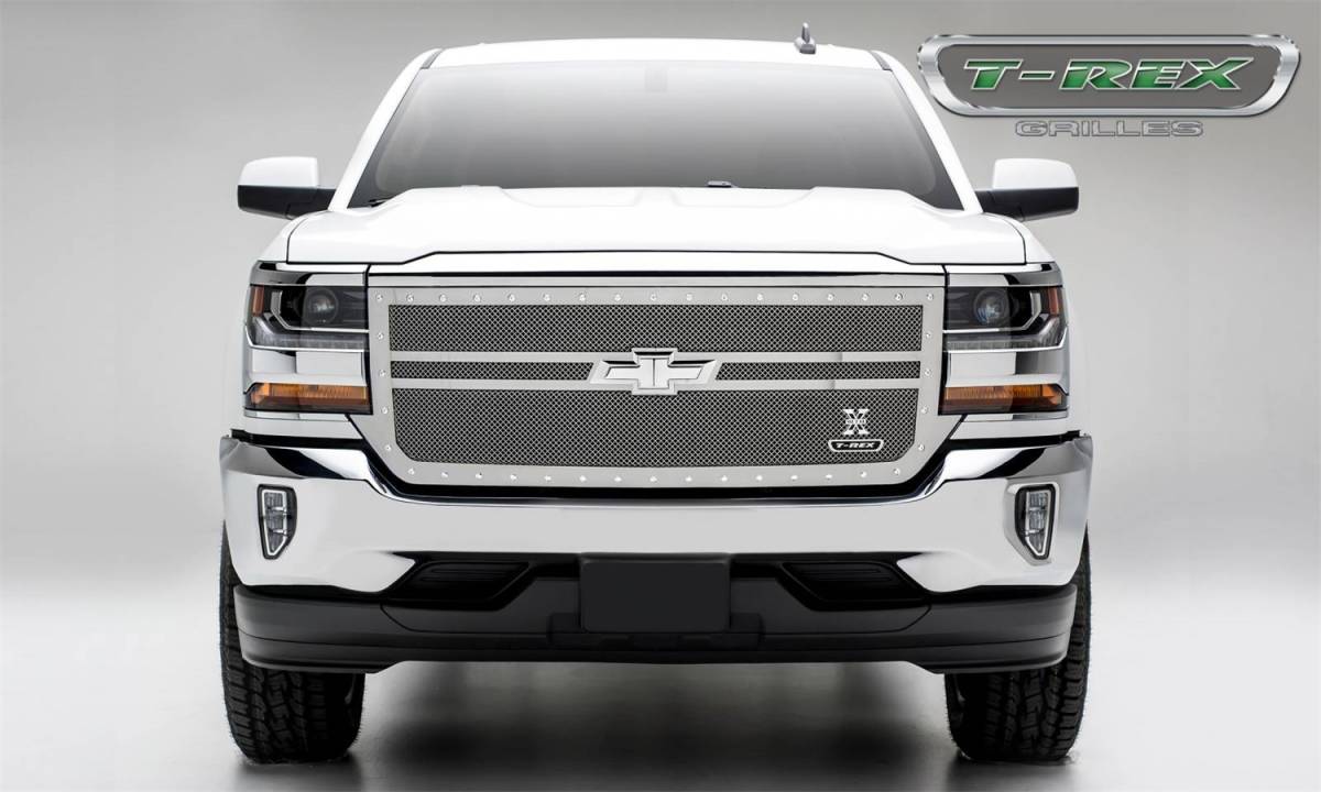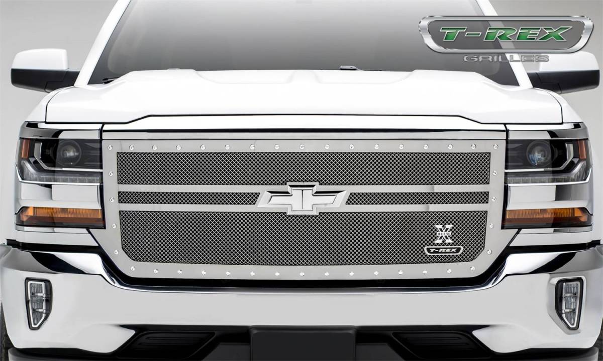 T-Rex Grilles 6711300 X-Metal Series Formed Mesh Grille Small Mesh - Stainless Steel - Polished - Chrome Studs - 1 Pc - Replacement - 2 Bar Design