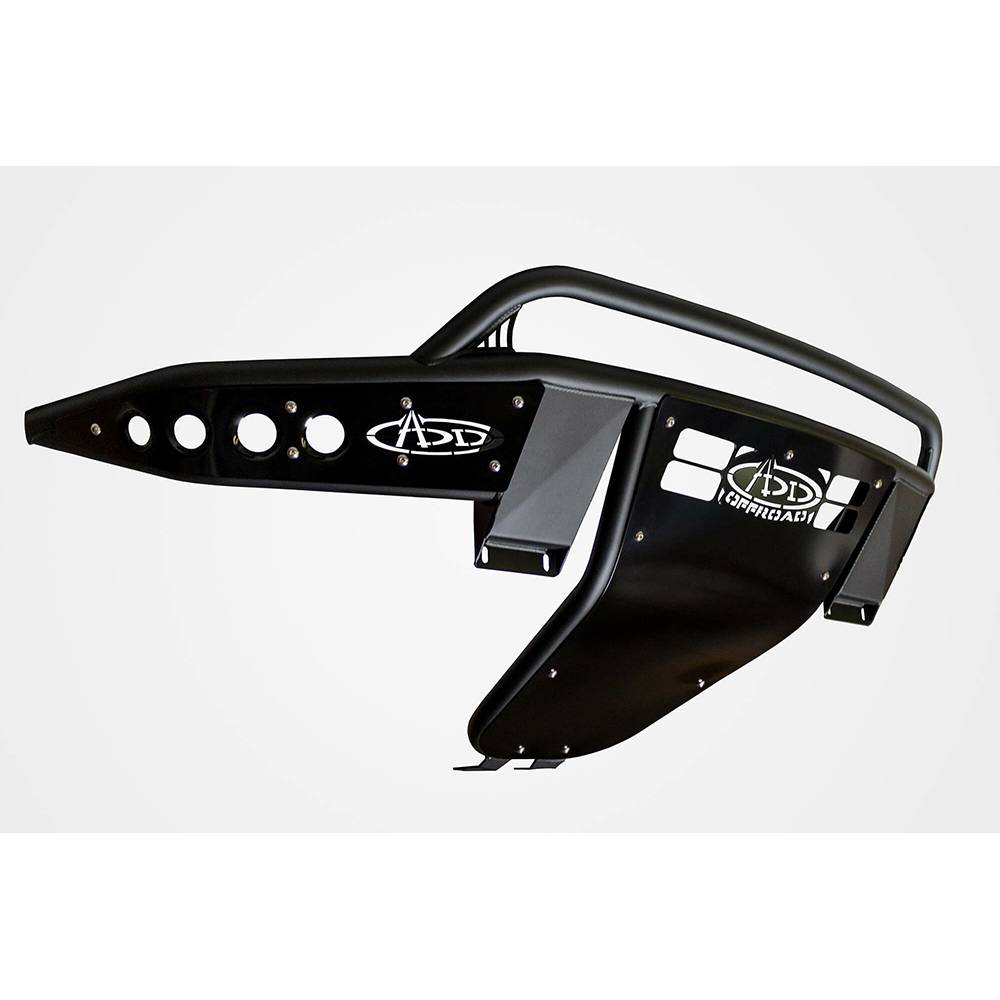 The stealth R ram rebel front bumper is a necessity as ADD designed the bumper with protection in mind. Made of north American steel and features a 2" radius-rolled and bent main tube, 1.75" tubing as support and plate steel for bolt-on mounting points this bumper packs a punch. Frame horn attachment points allow for the front bumper to be installed in a matter of a few hours as it features a bolt on design, with minor cutting optional. To complete the look of the stealth R front bumper ADD uses aircraft grade aluminium for the skid plate and stealth panels both powder coated satin black while the rest of the bumper is a hammer black powder coat.