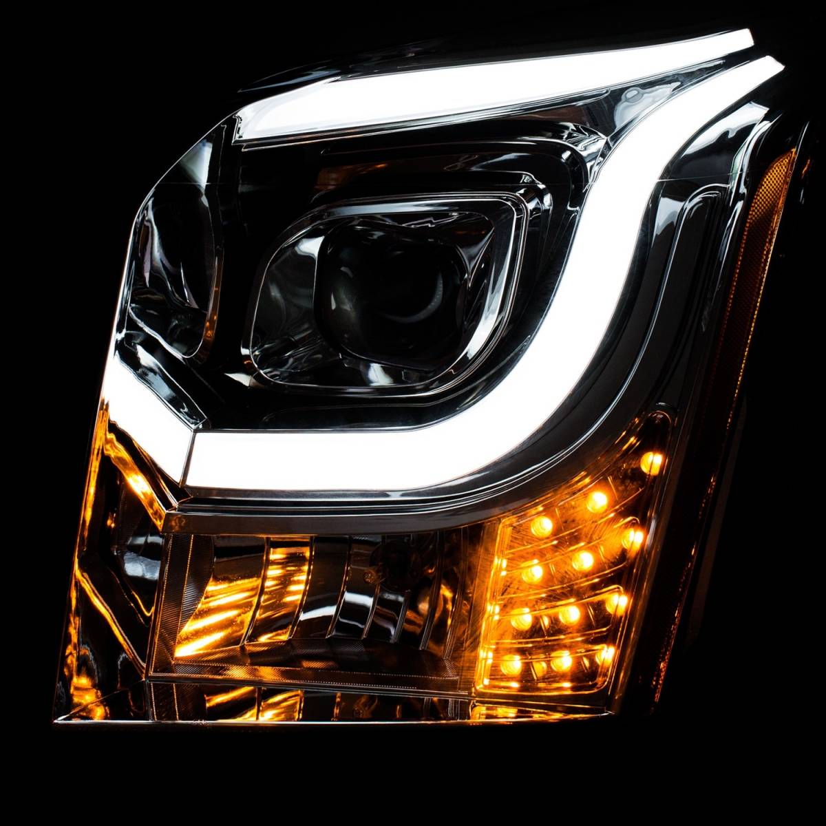 Anzo USA 111343 Projector Headlight Set Clear Lens - Plank Style - Black Housing - w/Chrome/Amber Trim - Pair
