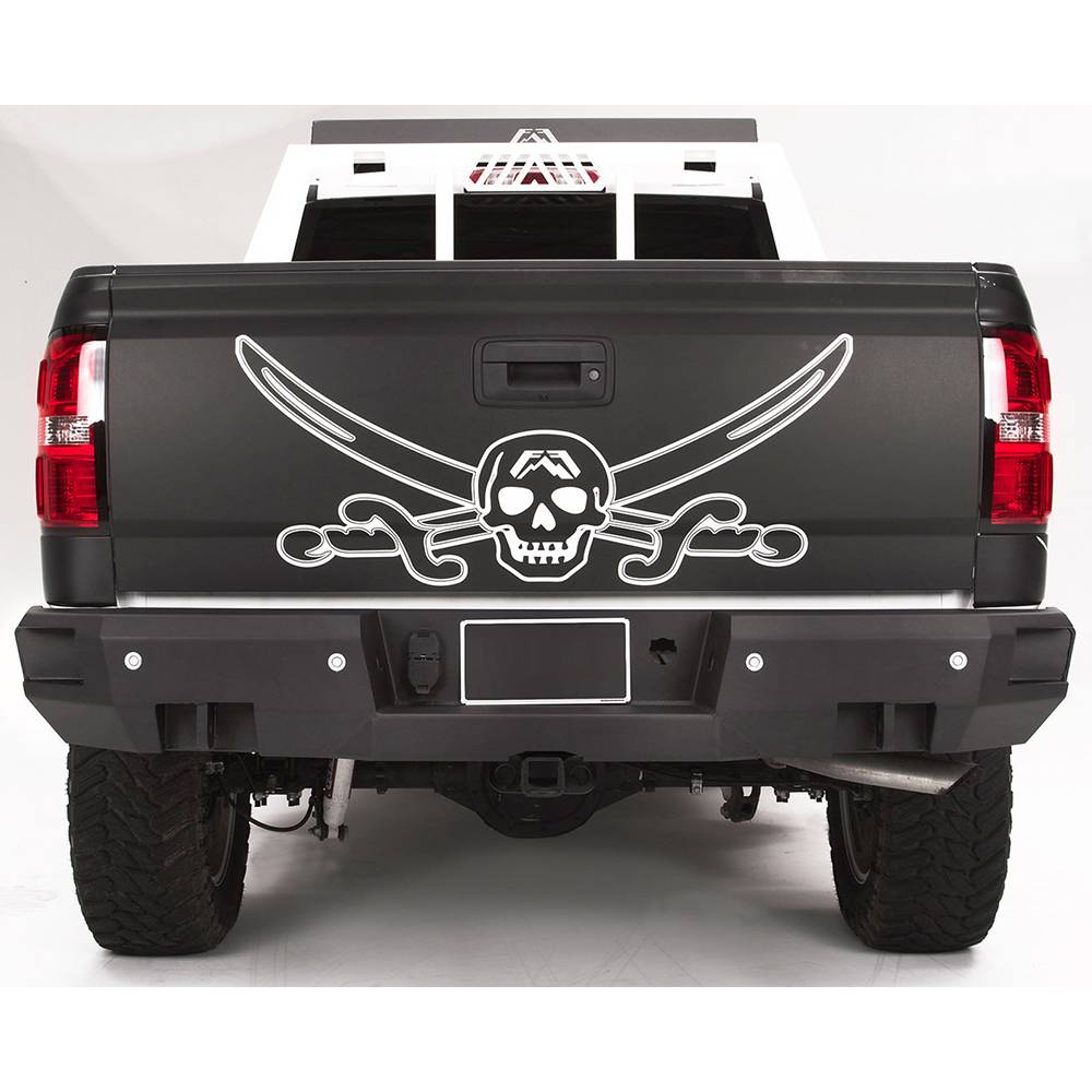 The Fab Fours Chevy 1500 rear replacement bumper integrates the existing receiver hitch. In addition to added style and formed-steel durability, the vehicle gains lower steps and recovery points. Designed to be the ultimate in functionally-stylish rear-end protection.