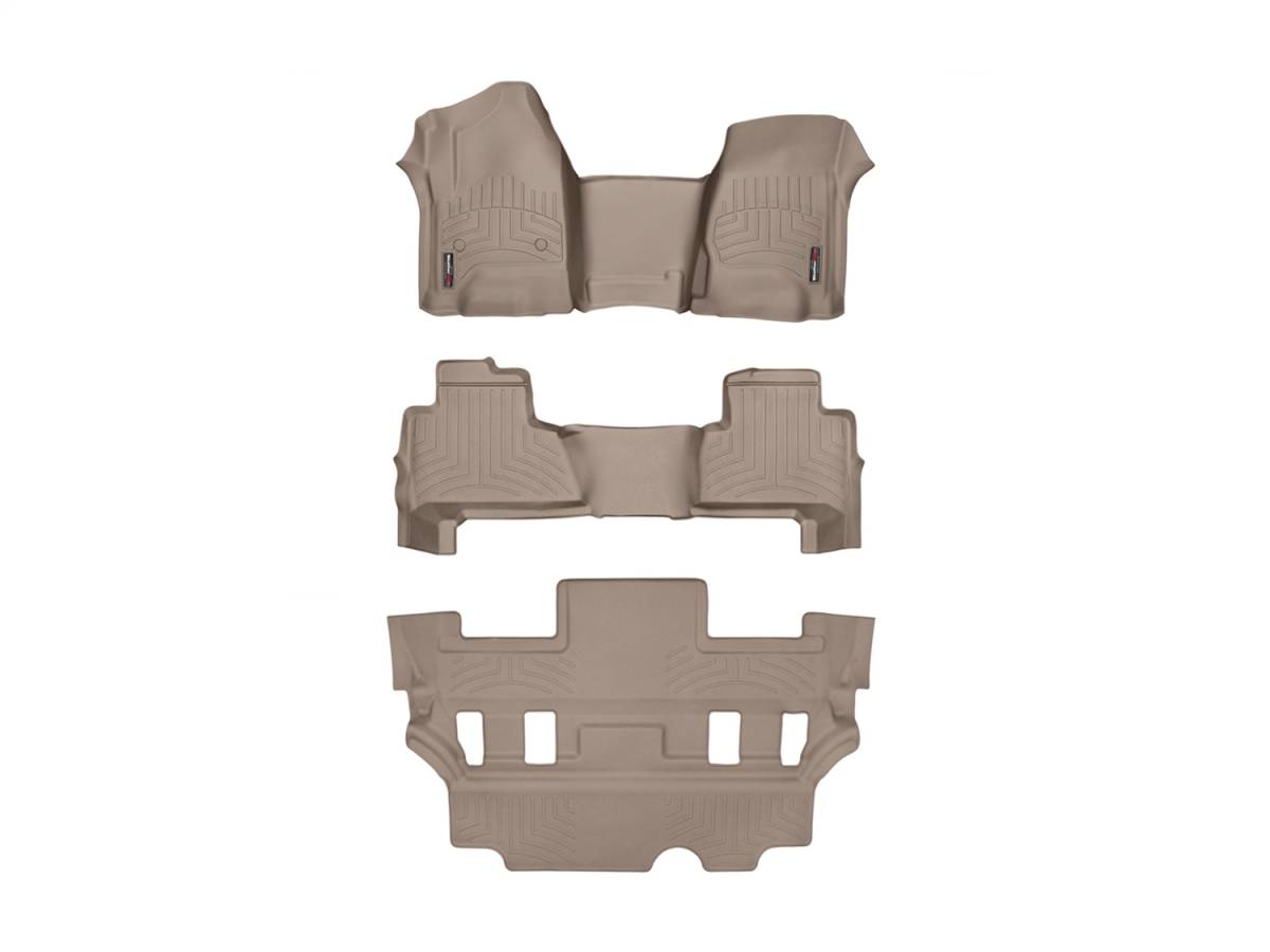 WeatherTech 455431-45607-2-7 FloorLiner DigitalFit Tan - Front Rear And Third Row - Over The Hump - Front Row Bench Seat - Rear Row Bucket Seating