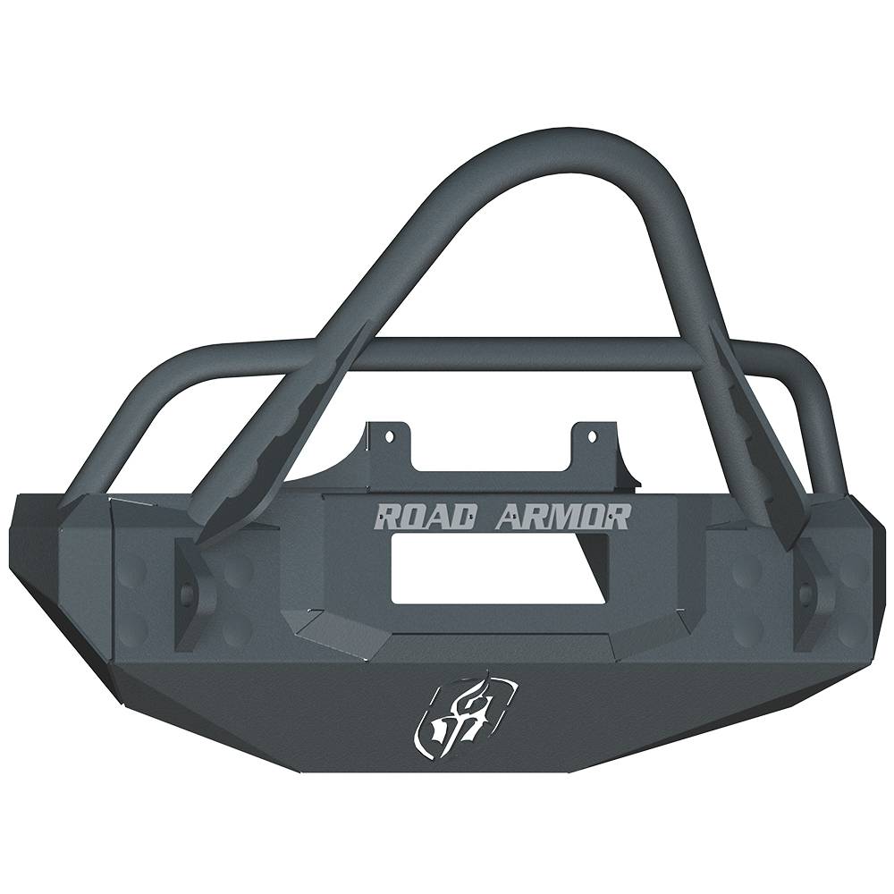 Road Armor stealth full replacement winch bumpers are rugged and loaded with added utility. The original faceted stealth series steel bumper in standard premium 5-stage satin black powder-coat finish was the pioneer of the aftermarket bumper segment. Specifically designed to follow, compliment and accentuate the body lines of your vehicle, this masterpiece of metal houses a WARN powerplant winch or similar and has recessed light ports for (1x) 20-" rigid light bar, (4x) rigid dually/D2 or quake LED and (2x) light tabs on pre-runner bar.