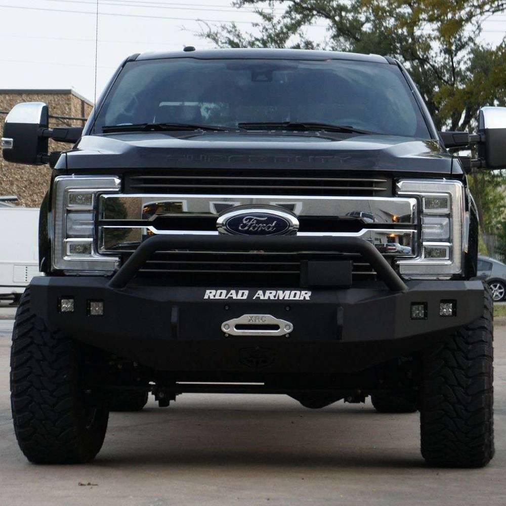 Road Armor 617F4B Stealth Winch Front Bumper with Pre-Runner Guard and Square Light Holes for Ford F250/F350 2017-2021