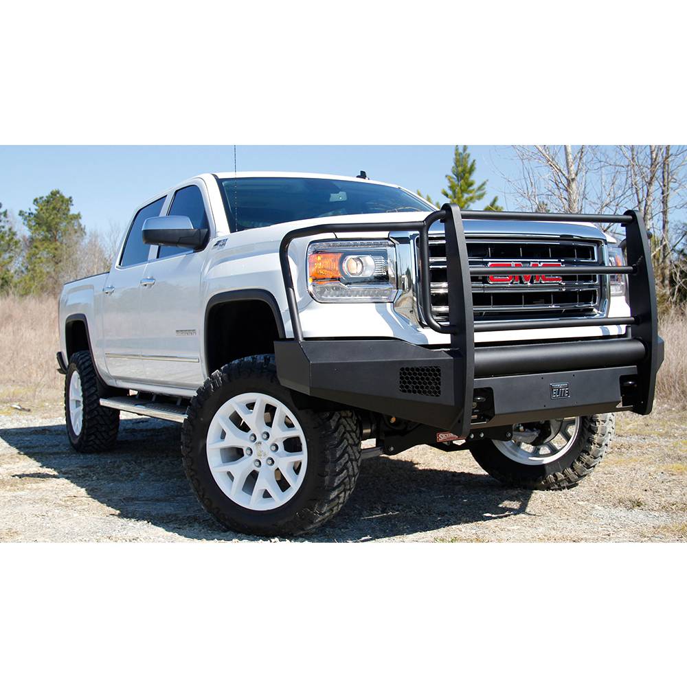 For the GMC 1500 we took the ranch bumper design and combined it with the smooth plate look from our premium line to create Black Steel Elite. No grill mesh and premium powder coat give the Elite bumpers a unique look.
