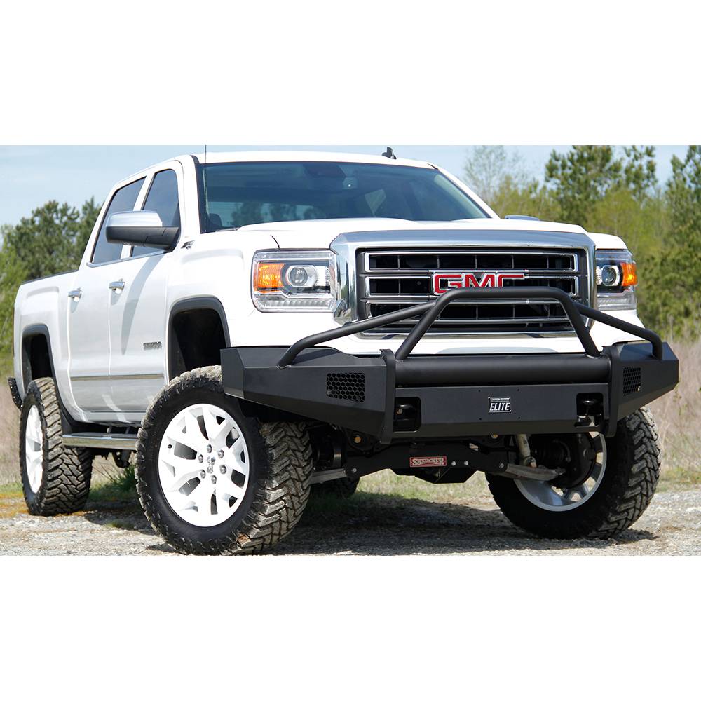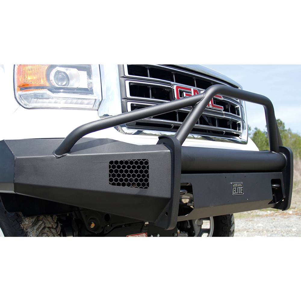 For the GMC 1500 we took the ranch bumper design and combined it with the smooth plate look from our premium line to create Black Steel Elite. No grill mesh and premium powder coat give the Elite bumpers a unique look.