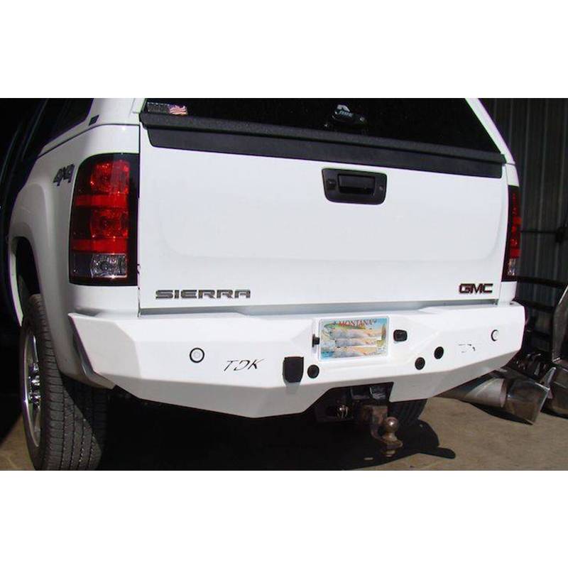 This steel bumper look great but it offers protection for the rear end of your truck. All TDK bumpers are handmade in the USA and meticulous production process results in high-quality rear bumpers that can endure the harshest conditions for a lifetime. In fact, this easy-to-install bumper may outlast your truck. If the bumper is shipped with a bare steel finish, it is shrink-wrapped ready to paint with no swirl marks TDK bumpers are also available in three colors of powder coating to prevent corrosion. If your aluminum or plastic stock bumper isnt offering the protection and rugged look your hard-working truck needs.